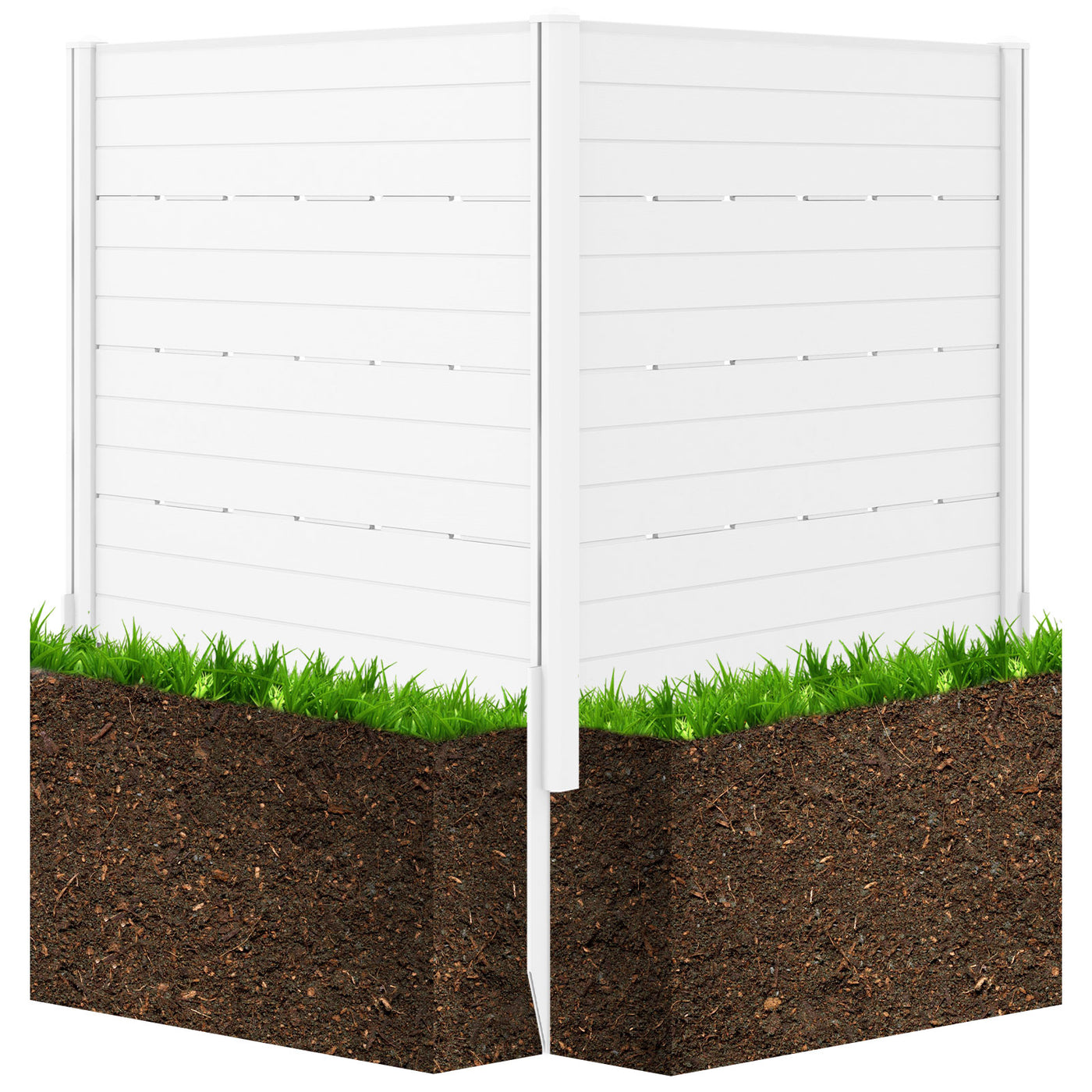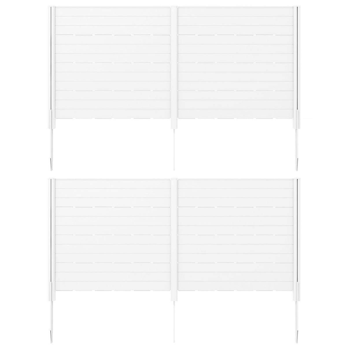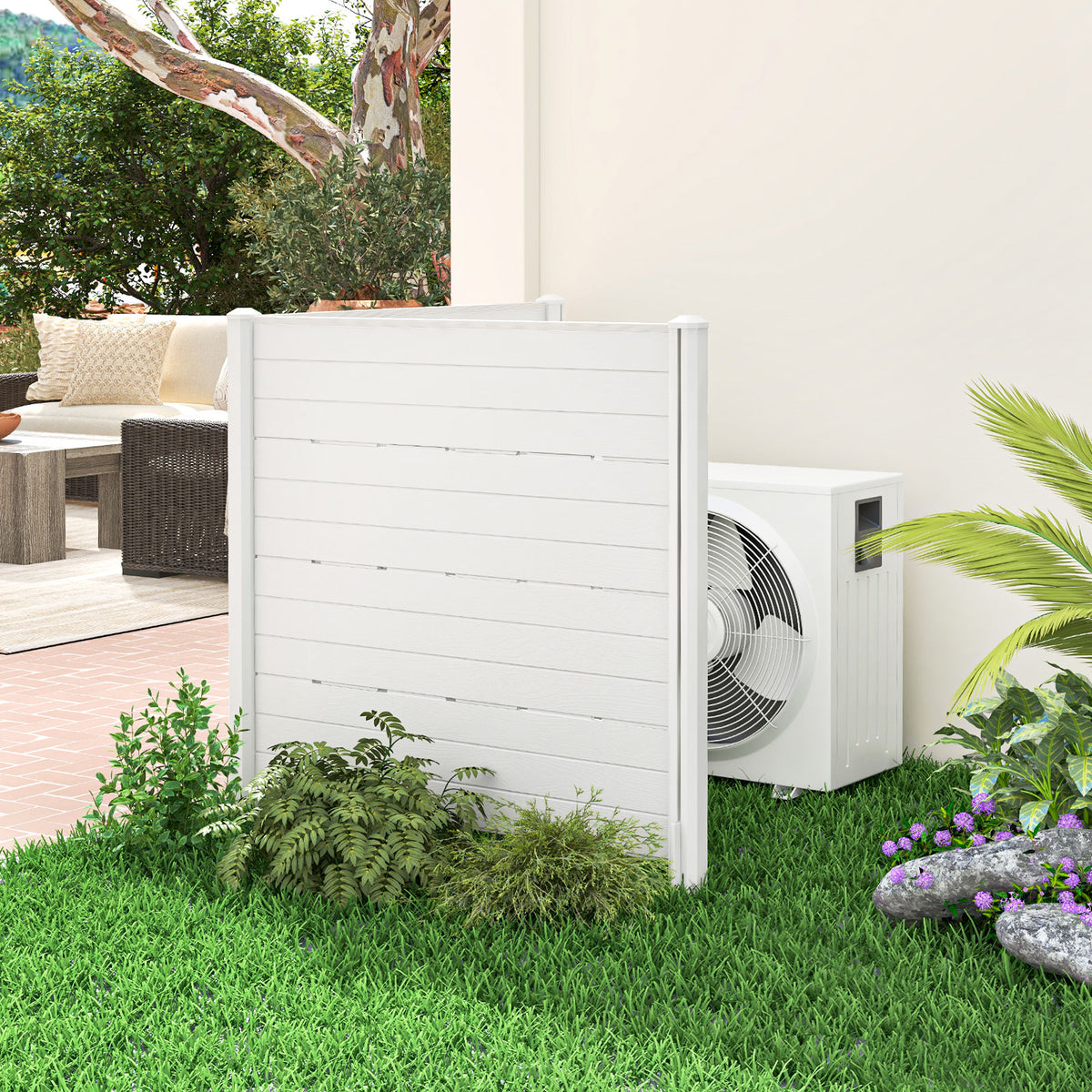Enhance the Privacy and Aesthetic of Your Outdoor Living Space! This outdoor privacy fence screen includes 2 panels measured 120 x 115 cm (L x H), and you can couple multiple sets together to create a larger privacy area, catering to the size and design of your outdoor space. Constructed from advanced HDPE material, this privacy fence is weatherproof, fade-resistant, crack resistant, and aging-resistant, ensuring long-term outdoor use. And there are wood-like textures on the surface, giving an elegant look to your fence. To enhance its stability and wind resistance, we provide 5 ground stakes for secure placement. Whether you want an outdoor equipment enclosure, trash can divider, garden fence, or pet fence, this privacy screen kit can be a perfect choice. Large Size and Flexible Layout: The outdoor privacy fence screen includes 2 panels and each measures 120 x 115 cm (L x H), providing ample privacy space. Besides, 2 panels can be arranged in a right angle or flat angle, providing customizable privacy solutions. Also, you can add more panels to create a large privacy fence for different needs. Durable and Premium HDPE Material: The air conditioner fence is crafted of high-quality HDPE material, which boasts superior endurance against the elements without succumbing to aging or crack. Moreover, it features delicate wood-like textures, offering both practicality and an elegant touch to your outdoor sanctuary. Robust and Stable Construction: In contrast to normal privacy fence with only 3 stakes, this 2-panel privacy screen kit is equipped with 5 long and sharp ground stakes (45 cm length each), providing superior stability. And it is applicable to different types of soil, such as soft soil, sand, or hard soil. Multipurpose Design: This privacy fence screen serves multiple uses, which could shield unsightly air conditioners, trash cans, compost bins, or pool pumps, keeping your kids and pets away from outdoor dangerous constructions. Moreover, it can also serve as a pet fence or garden fence for added protection. Easy Installation: With its simple structure and clear instructions in the user’s manual, setting up this privacy fence is a breeze. All you need to do is assembly panels one by one and then secure the fence in place with the provided ground stakes.