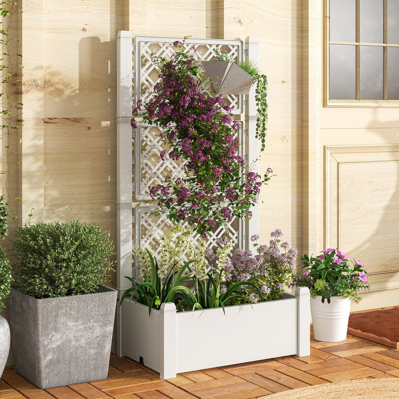 Colour: Coffee/White Material: PP Overall Dimensions: 76 x 45 x 150 cm (L x W x H) Size of Entire Trellis: 76 x 124 cm (L x H) Size of Each Trellis Panel: 59 x 36 cm (L x H) Height of Lattice Trellis: 150 cm, 113 cm, 76 cm Inner Size of Planter Box: 69 x 38 x 19 cm (L x W x H) Capacity of Planter Box: 53L Water Storage Capacity: 9L Load Capacity of Trellis: 10 kg Load Capacity of Garden Bed: 25 kg Net Weight: 8.5 kg Box Qty:1(May vary by batch)Package Includes: 1 x Garden Bed with Trellis 1 x Water Level Indicator 1 x Instruction Manual