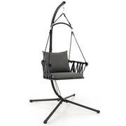 The rustproof metal frame with plastic-sprayed surface ensures both durability and longevity. The woven backrest adds a touch of elegance to the chair while providing exceptional support to your back. To enhance your lounging experience, the swing chair comes with cozy seat and back cushions. Moreover, the stand provides stability and eliminates the need for installing hooks or drilling holes in your ceiling. With this convenience, you can easily move the chair around to find the best spot for relaxation. So, why wait? Bring comfort, style, and relaxation to your outdoor or indoor space with the hanging swing chair. Allow yourself to enjoy countless tranquil moments in this cozy seat, enhancing your overall well-being in the process. Upgraded Comfort: The hanging swing chair comes with a seat and back cushion, which are filled with high-density fillings, offering you soft and elastic seat to sit. The covers of cushions are breathable and anti-fading. And the convenient zipper makes the cushion covers much easier to maintain. Heavy-Duty Metal Stand: The swing stand offers a perfect place to hang the swing chair. It's constructed of heavy-duty and rustproof metal frame for high-level stability. And the reinforced carabiners and robust spring hook offer extra security. Foldable Swing Chair: When not in use the egg chair can be folded flat to save space. The folding size which is much more compact allows you to store the folded egg chair in any corners of your room. Well-Made Details: The enhanced X-shaped base and non-slip footpads of the swing stand ensure strong support. As for the swing chair, it possesses stable polyester hanging ropes and well-woven backrest ropes for both elegance and sturdiness. Wide Application: This swing chair with stand will be a perfect indoor and outdoor addition, which allows you to enjoy your leisure time with optimal comfort. It's perfect to be used in living room, bedroom, balcony, front porch and so on.