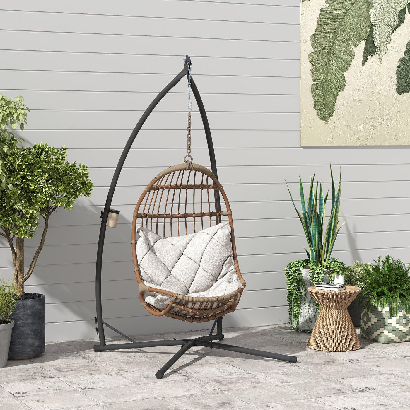Thanks to this Outsunny hammock swing stand, you can hang and relax practically anywhere you want. The powder coated steel frame make the egg chair stand strong, paired with the spring buckle attachment to hold the chair securely in place and a steel chain for slight height adjustment. The hanging basket stand is supported by long legs and corner brackets for balance and stability. Complete with a handy cup holder for convenience.