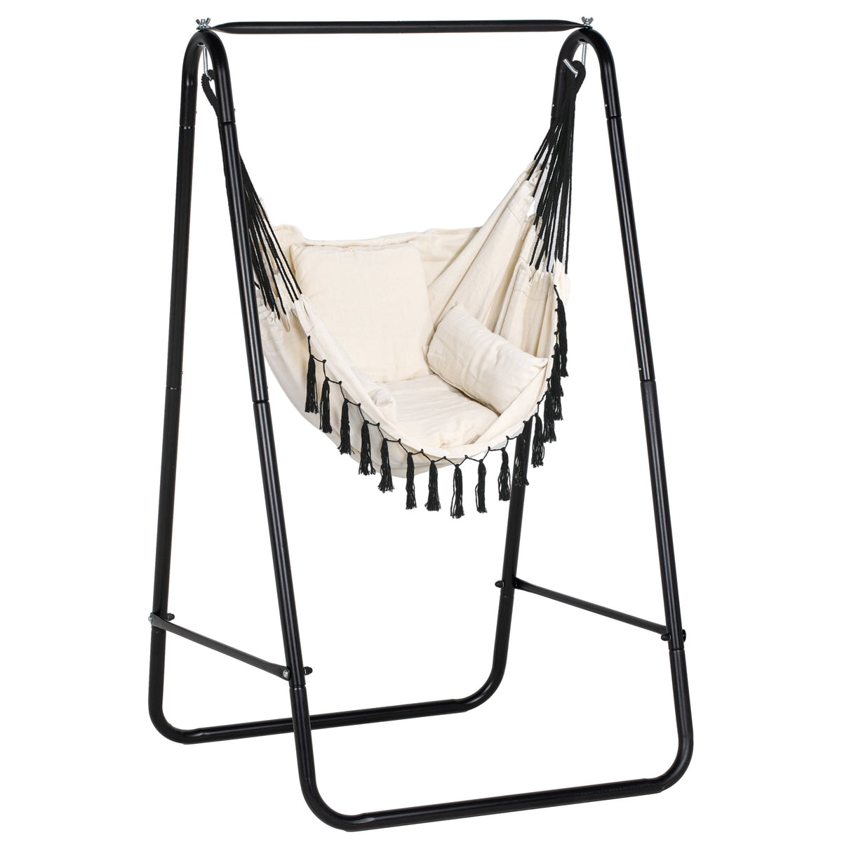 Outsunny Hammock Chair with Stand, Hammock Swing Chair with Cushion, Cream White - Cream