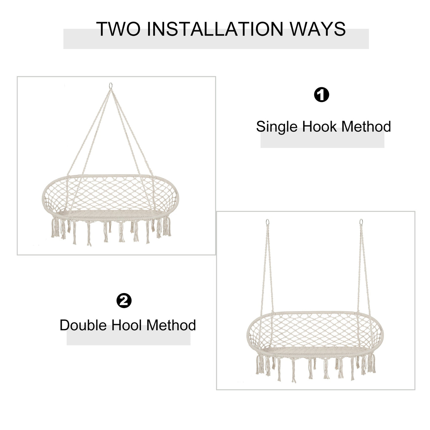 Outsunny Hanging Hammock Chair Cotton Rope Porch Swing with Metal Frame, Large Macrame Seat for Patio, Garden, Bedroom, Living Room, Cream White - Cream