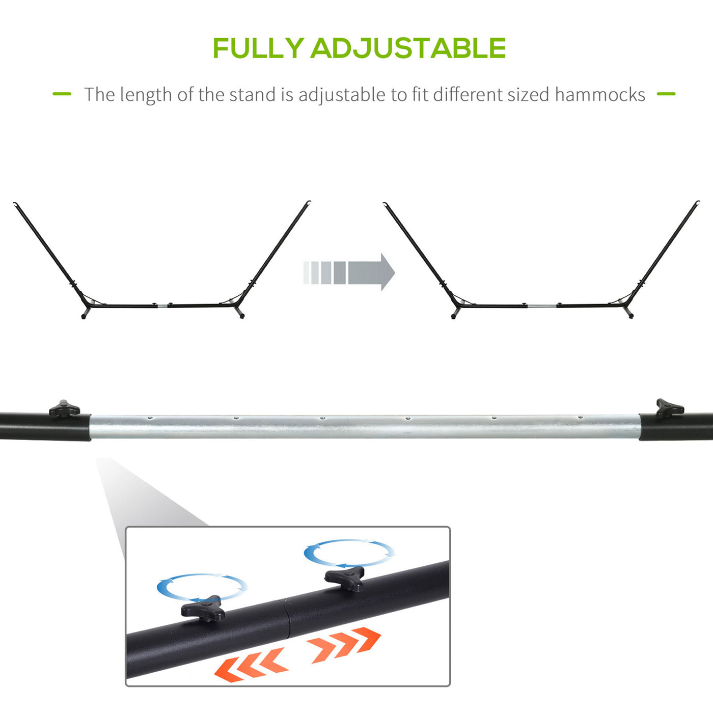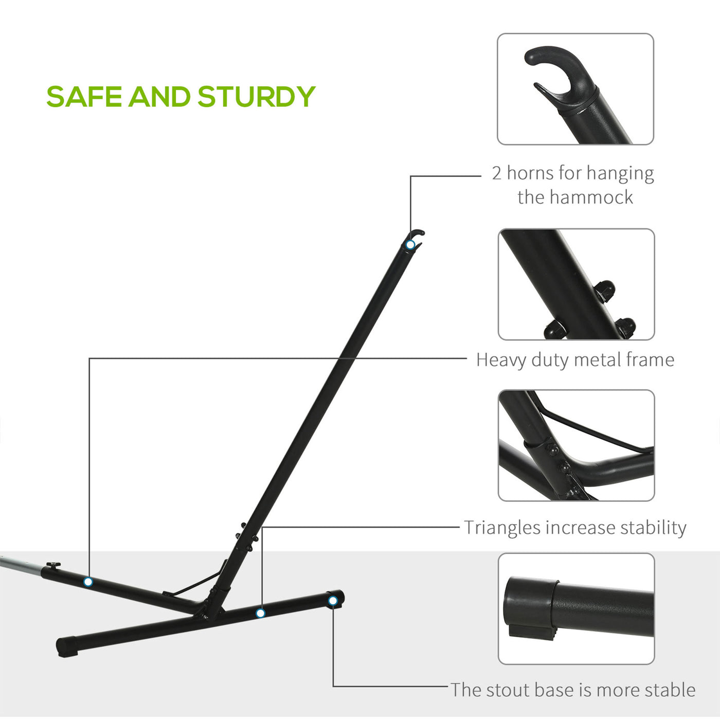 Outsunny Outdoor Garden Hammock with Stand, Double Cotton Hammock with Adjustable Steel Frame, Swing Hanging Bed with Pillow, for Garden, Patio, Beach, Green Stripes - Green Stripes