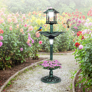 Antique Lighted Birdbath and Feeder Combo with 2 Solar-powered Lamps-Green