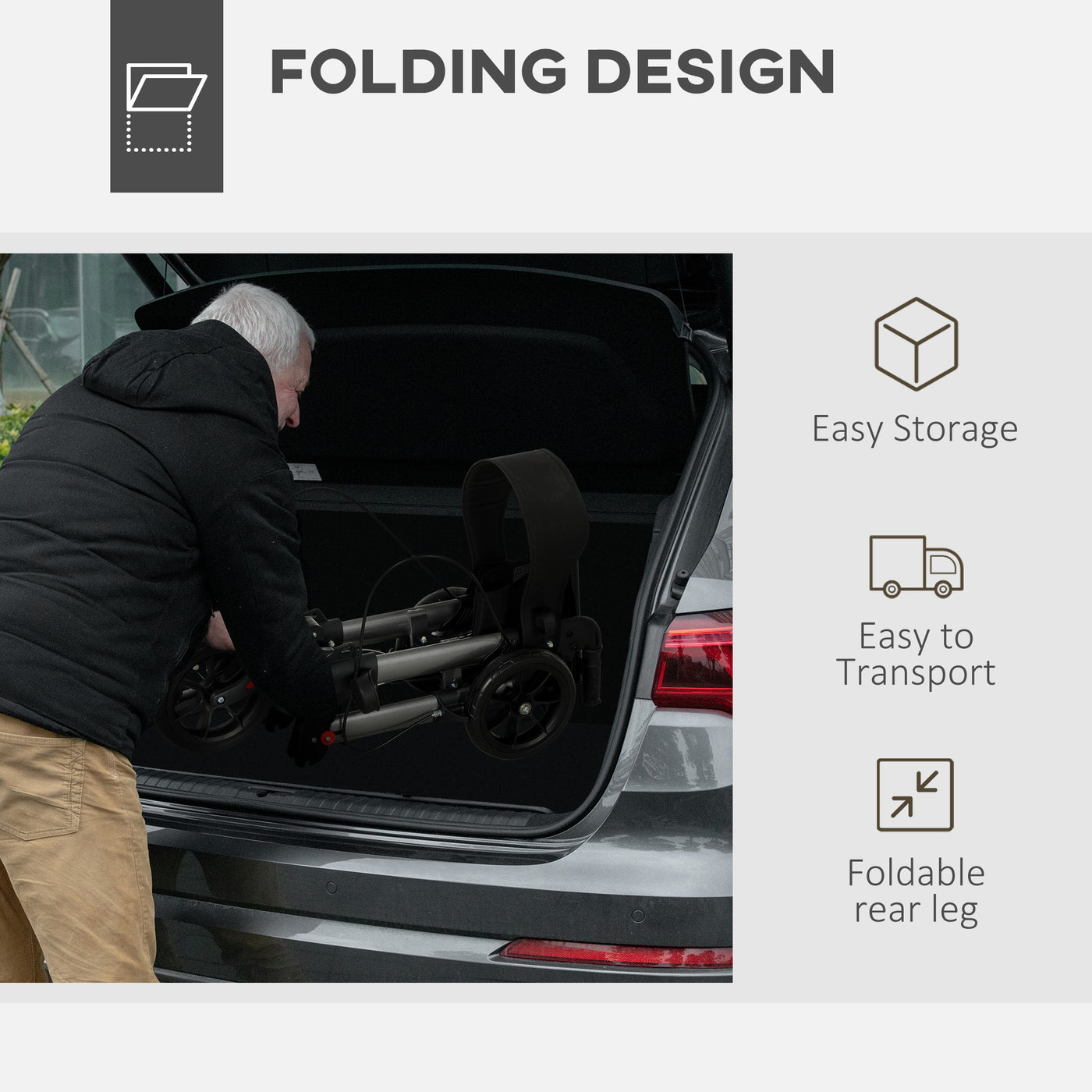 HOMCOM 4 Wheel Rollator with Seat and Back, Folding Mobility Walker with Carry Bag, Adjustable Height, Dual Brakes, Cane Holder, Lightweight Aluminium Walking Frame for Seniors and Disabled, Silver - Silver