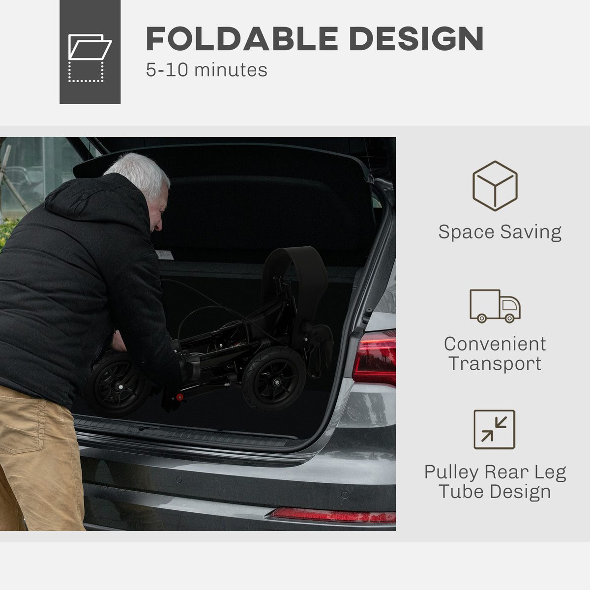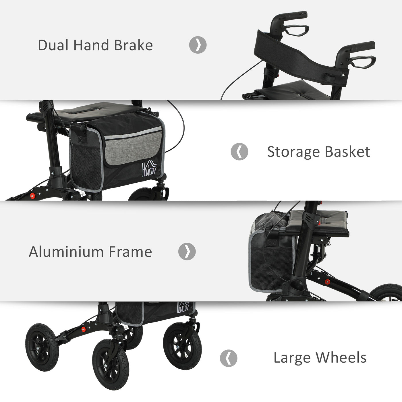 HOMCOM Folding Rollator Walker with Padded Seat, Backrest, Lightweight Walking Frame with Storage Bag, Dual Brakes, All-terrain Wheels, Adjustable Handle Height, 4 Wheeled Walker for Seniors, Black - Black