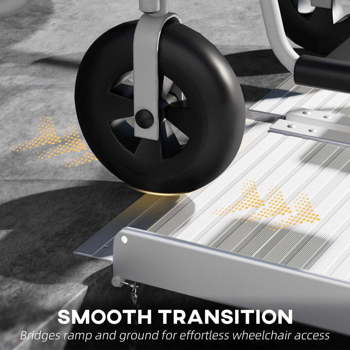 HOMCOM Textured Aluminum Folding Wheelchair Ramp, 183 x 72 cm Portable Threshold Ramp, for Scooter Steps Home Stairs Doorways - Silver