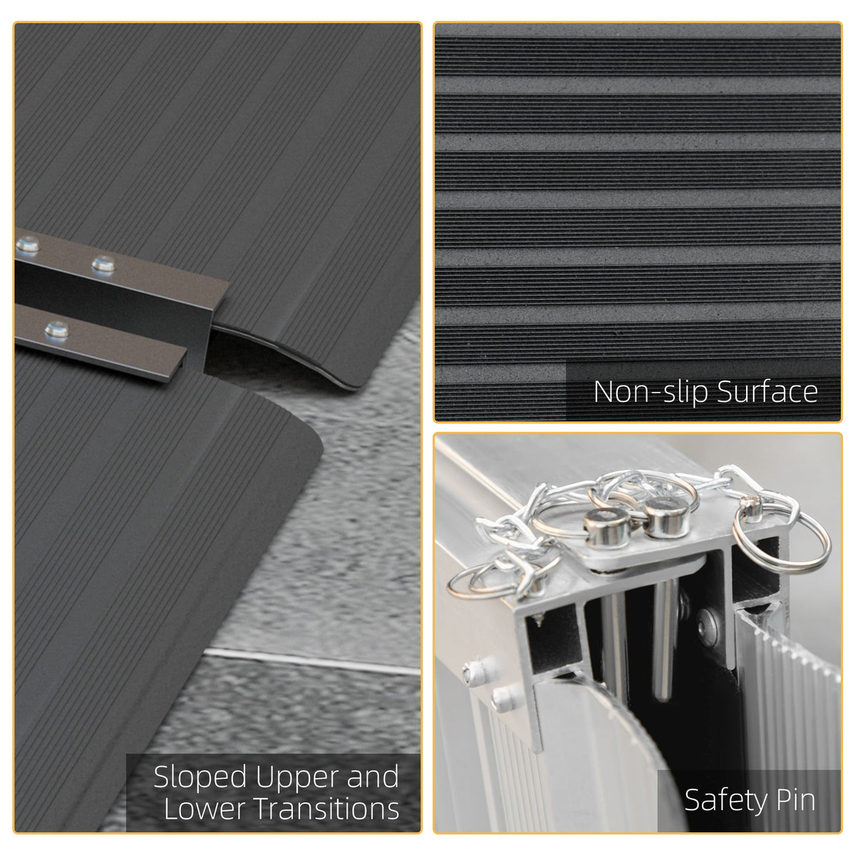 HOMCOM Wheelchair Ramp, 152L x 73Wcm, 272KG Capacity, Folding Aluminium Threshold Ramp with Non-Skid Surface, Transition Plates Above and Below for Home, Steps, Stairs, Curbs, Doorways - Black