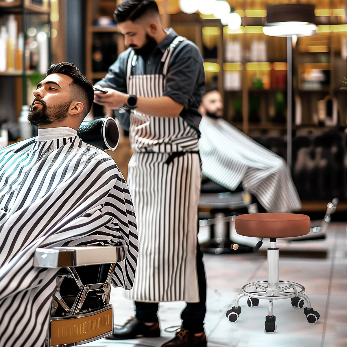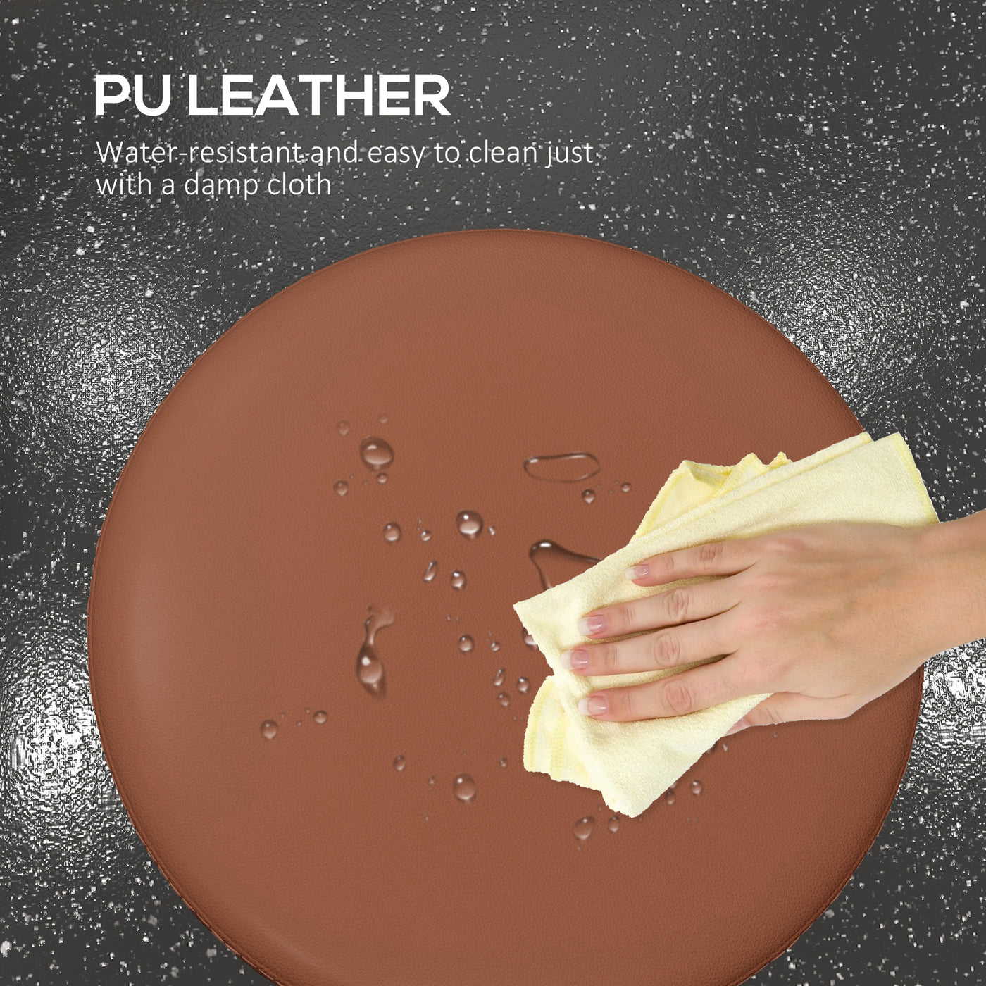 Vinsetto PU Leather Rolling Stool, Height Adjustable Stool Chair with Wheels for Salon, Massage, Spa, Brown - Brown