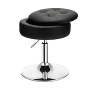 The height-adjustable stool easily matches desks of different heights. And with the convenient control lever, it's easy to operate and adjust the height! What's more, the soft-padded seat will greatly improve the seating comfort. Besides, the high-end PU leather and tufted design make the vanity stool look of great value. On the other hand, the seat lid is removable and there's a storage compartment to bring you some convenience. Flip the lid over, the plywood top can be used as a tray for afternoon tea! In addition to the above advantages, the upholstered storage ottoman also boasts superior stability thanks to the stable plated chassis, which is enhanced with non-slip rubber pads for floor protection. If you are looking for such a product, do not hesitate to buy it! Adjustable Height for Flexibility: As you want, the overall height of the vanity stool can be customized between 50cm and 66cm to satisfy more needs. A low position is cozy for you to stretch your legs and a specific position based on your height is perfect for rest, makeup or working. As a reminder, a 75cm-80cm high vanity table would be suitable. 360° Swivel Seat with Stability: To ensure good flexibility in use, the padded makeup stool features a 360° swivel design, allowing for free talks in different directions. More, the round footstool also features a wide steel base fitted with an anti-slip rubber ring, intending to enhance the friction on the floor and eliminate accidental sliding. Storage for More Purposes: Mostly, it serves people as a comfy vanity stool or a barstool. But it's also a helpful storage ottoman addition at the same time. As long as you remove the top lid, an inner space can store various sundries. Or, you can directly turn over the lid and use the stool as a delicate coffee table for snacks. Ideal Sturdiness and Comfort: Supported by a steel base and gas rod, the dressing table stool offers a strong load capacity of 150kg. More, the pouf ottoman also combines perfect comfort. Inside, the makeup vanity stool is filled with a high-density sponge for great softness. Outside, selected PU leather features superior breathability to get rid of stuffy feelings. Elegant Style and Easy Assembly: Surprisingly, the swivel accent stool comes with an elegant design to work as an exquisite decoration in your home, which only requires a very simple and quick installation. Especially its seat is beautifully tufted with rounded buttons, echoing the overall circular shape to highlight a gentle nobility.