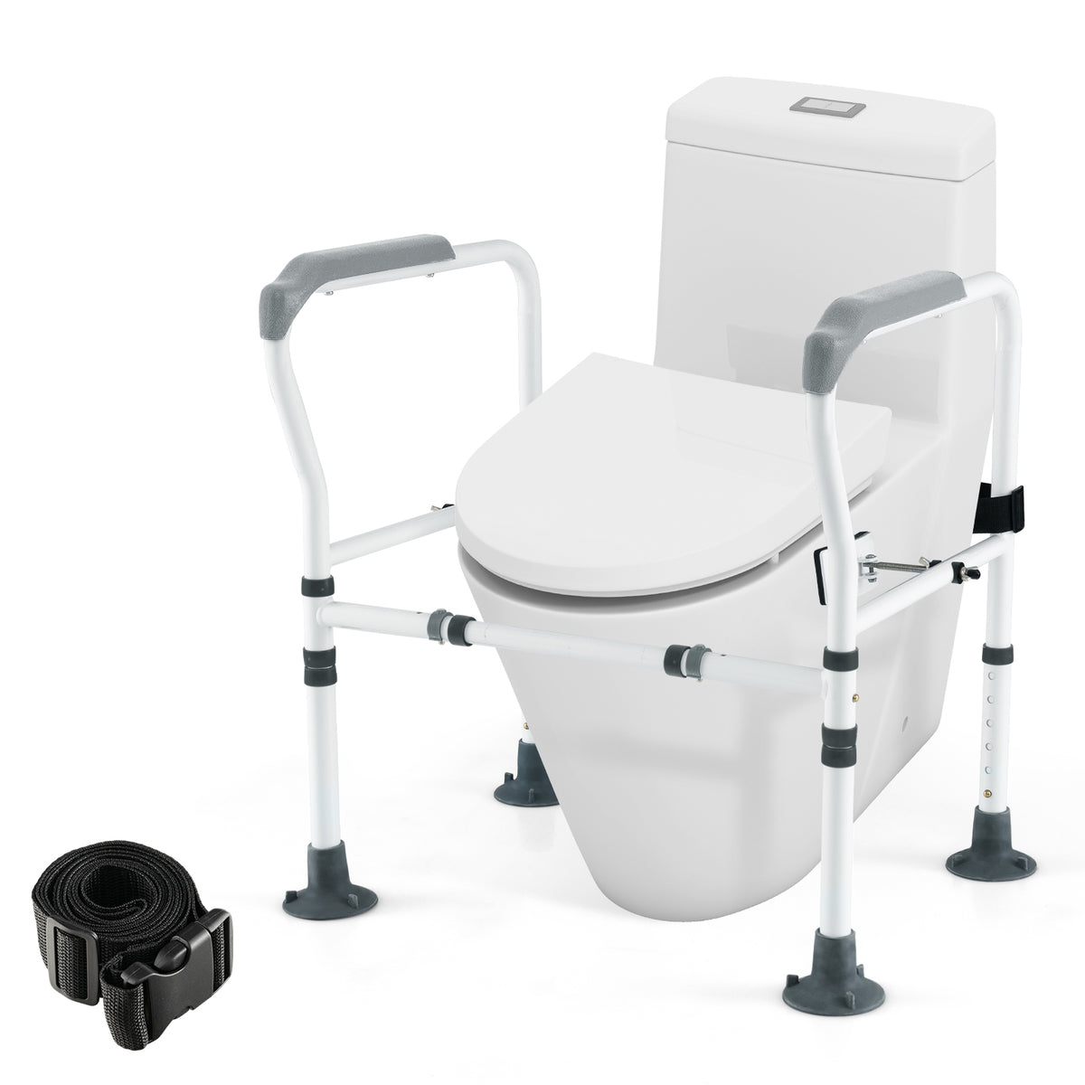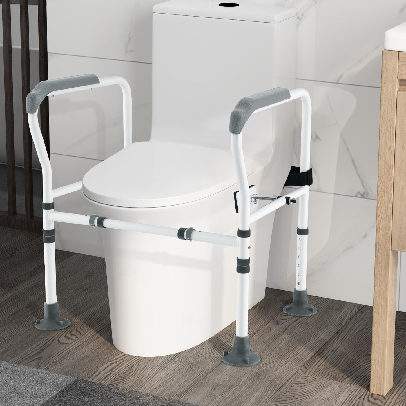This toilet safety rail can be adjustable in 6 heights and 2 widths, making it suitable for most shapes or sizes of toilets, such as U-shaped toilet, V-shaped toilet, round toilet and square toilet. And the 360°adjustable clamps and fixed strap help you to fix it to the toilet more closely and firmly, which prevents shaking and wobbling and improves safety. This toilet safety frame is made of high strength carbon steel pipes with powder coated surface for better wear resistance and rust resistance. And it can support up to 150 kg. The assembly requires no tools and you can fold it into a compact when not in use. Adjustable Heights and Widths: Featuring 6 adjustable heights and 2 adjustable widths, this toilet safety rail fits most kinds of toilets, such as U-shaped toilet, V-shaped toilet, round toilet and square toilet. Plus, the package comes with an extra fixed strap for firmly attaching it to the toilet. Sturdy and Safe Structure: Made of high-strength carbon steel pipe, this toilet safety frame is able to support up to 150 kg. The 360° adjustable fixed clamps effectively avoid shaking and wobbling, and the non-slip suction cups ensure better stability even on smooth surfaces. Why Choose Our Toilet Safety Rail: The frame of some toilet rails selling on the market is likely to tip over when two hands are stressing on the same side. Unlike these toilet rails, this toilet rail with stable construction keeps steady even two hands stress on one side. Foldable and Space-Saving Design: This free-standing toilet safety rail can be folded into a compact size, which only needs you to detach the clamps, press buttons and fold. The folded toilet safety rail is easy for transportation and storage. Tool-Free Assembly and Wide Application: The assembly is easy following included instructions, requiring no tools. This toilet rail provides firm support to people in need, including the elderly, handicapped, post surgery patients and pregnant women. It is suitable for various scenarios, such as home, hospital, nursing home and postpartum care center.