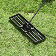 Creating a level lawn for you with our lawn level too! The lawn levelling rake comes with a large plate, enabling you to easily keep your lawn flat and beautiful. Besides, 2 detachable rods are long enough to allow you to work effortlessly without bending over. And you can easily disassemble them for storage when not in use. Besides, the rubber grip makes you comfortable at work. We use thickened metal which features excellent durability and sturdiness. And the powder coating on its surface can prevent rust. In addition, the grass rake only needs easy assembly before use. Ergonomic Long Handle: Equipped with a 170cm long rod, the lawn leveller allows for effort-saving operation, which is dedicated to improving your work efficiency without bending. Besides, the rod features an anti-slip PVC handle to guarantee firm and comfortable grip.Efficient and Wide Flat Rake: Compared to other lawn levelling tools, ours feature a 75/91/106 x 25cm (L x W) spreading plate, covering a large area to easily remove stones from the soil and break small clods. Plus, the lawn levelling rake comes with a flexibly rotatable U-shaped head to speed up your levelling work.Sturdy Metal Frame: Made from thick painted metal, this lawn level rake is deformation-resistant and anti-rust for long service life. Also, the rake head and the pole are firmly connected with screws, which will not easily loosen or break.Simple Installation and Storage: The landscape rake is easy to assemble, you just need to prepare all the parts, align the U-shaped head with rake and tighten, then screw in and tighten the handle to finish the assembly. Likewise, storage is quite easy by detaching the 2 rods.Suitable for Types of Grass: This gardening levelling rake is suitable for kinds of lawns in yards, gardens, pastures, farms, golf courses and football courses. Meanwhile, the lawn rake is perfect for levelling soil, sand, topsoil, peat moss and compost.