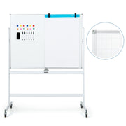 Featuring adjustable height, this whiteboard is suitable for users of different ages, whether for adults or for kids. In addition, featuring a sturdy aluminum tube frame, the flipchart board is built to last. Not to mention the 360° flip mechanism with a locking button, which allows for effortless flipping to the other side to meet your writing space needs. For added convenience, the whiteboard comes with a marker tray to keep your markers organized and within easy reach. Furthermore, included in this product are 6 black markers, 1 board eraser, 12 magnets, 2 clips, 25 writing papers, and 2 installation tools, and with this comprehensive set, you have everything you need to get started right away. Last but not least, the board is equipped with 4 lockable wheels to provide excellent mobility and stability during use. Whether you're in a classroom, office, or home setting, this whiteboard is the perfect tool for brainstorming, teaching, presentations, and more. Get yours today and experience the convenience and versatility this whiteboard offers! If you are looking for such a product, do not hesitate to buy it! Height Adjustable Thoughtful Design: Elevate your workspace with this versatile whiteboard. Featuring a 2-position height adjustment design, you can discover the perfect height effortlessly, offering a versatile writing experience for both adults and kids, you can find the suitable height to meet your preference. Extra Writing Space: Unlock limitless creativity on this reversible whiteboard. You can effortlessly flip to the other side for extra writing space, while the locking button ensures durability during writing. Sturdy Construction and Premium Materials: Made from high-quality aluminum, this flip whiteboard boasts a solid frame and stand, complemented by a rust-protective lacquered board and sturdy ABS protection cover, ensuring long-lasting durability. Flexible and Convenient Design: Experience effortless mobility with this rolling whiteboard. Equipped with 4 universal wheels, this rolling whiteboard offers effortless free movement to any location, and the built-in brakes allow you to lock it securely in place for an uninterrupted class or meeting. Hassle-Free Assembly: With a Full Set of Accessories: With each part numbered and a comprehensive instruction manual, assembling this whiteboard is a breeze. Plus, we've included all necessary accessories, such as 6 Black Markers, 1 Board Eraser, 12 Magnets, and 2 Installation Tools, for a complete package.