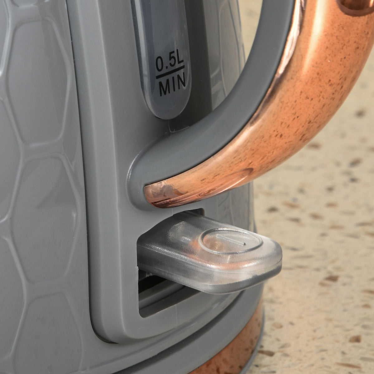 HOMCOM 1.7L 3000W Fast Boil Kettle & 4 Slice Toaster Set, Kettle and Toaster Set with 7 Browning Controls, Crumb Tray, Grey - Grey