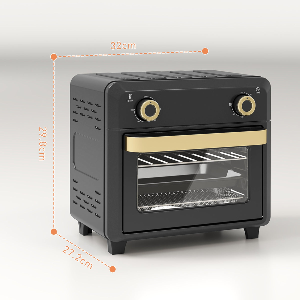 HOMCOM 10L Air Fryer Oven, Mini Oven, Oil Free Cooking, Grill, Roast, Bake, with Adjustable Temperature, Timer, Dishwasher Safe, 1000W, Black - Black