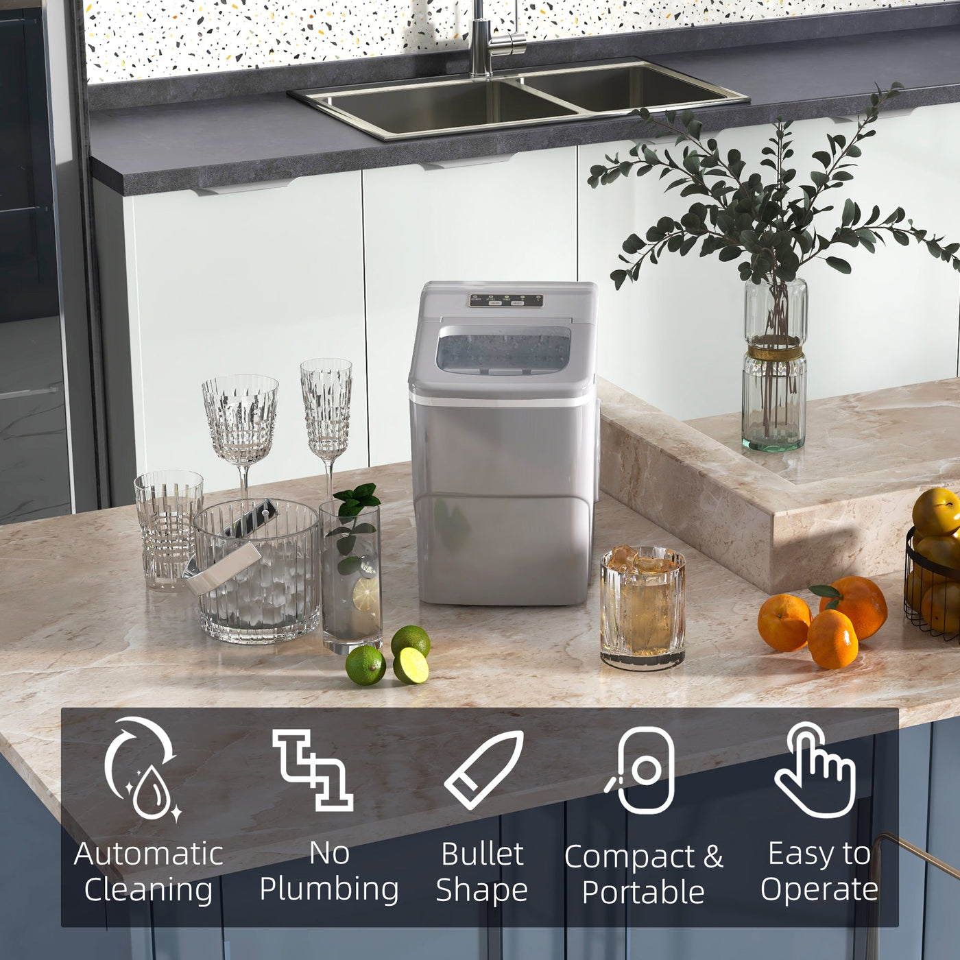 Get instant refreshment with the HOMCOM ice machine, serving up deliciously chilled drinks. It boasts a output of up to 12kg of ice per day, ensuring an abundant supply when hosting gatherings with friends. Even if you happen to run out, fear not, as it can generate approximately nine ice cubes in just eight minutes. The LCD display makes it easy to use, and the auto-clean mode saves time. It comes with a convenient plug for easy water drainage, adding to its overall convenience.