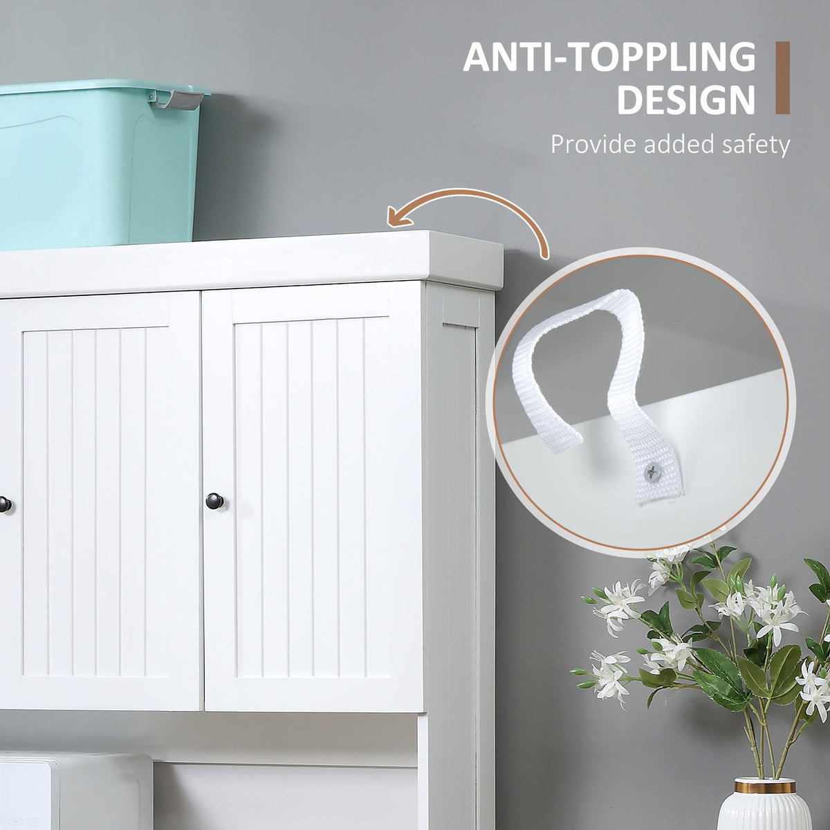 Bring style and space into your kitchen with this HOMCOM kitchen storage cabinet. Crafted from particle board, it's a solid addition to your home furniture. Spacious in design, it features two bottom and two top cabinets with multiple adjustable shelves, a pull-out drawer and an open countertop to ensure you have plenty of space in the kitchen. With a smooth surface top to ensure easy maintenance, the unit is finished with an anti-tipping straps on the back for safety.