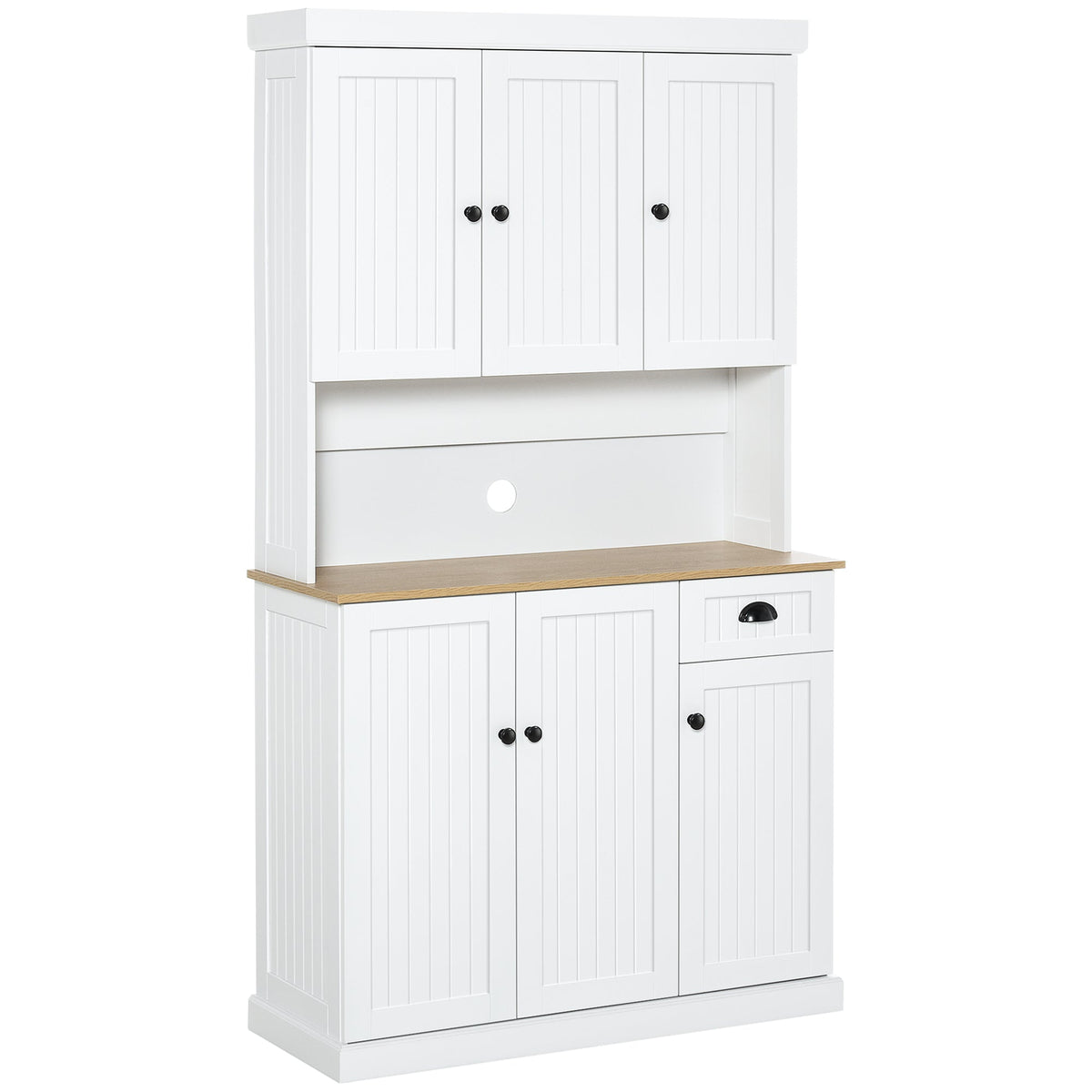 HOMCOM 180cm Freestanding Kitchen Cabinet, Modern Storage Cupboard with Open Countertop, Drawer and 6 Doors, White - White