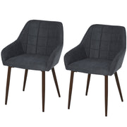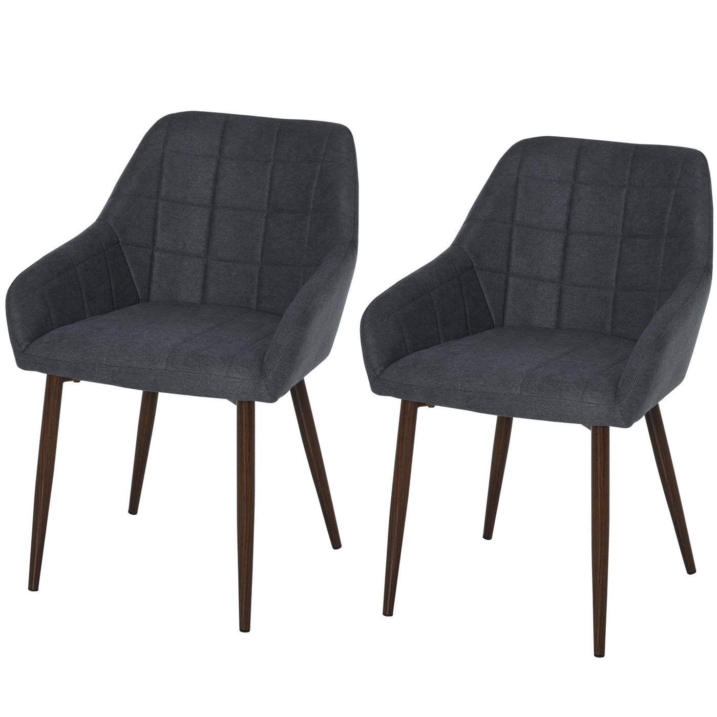 HOMCOM 2 Pieces Linen-Touch Fabric Dining Chair with Grid Pattern Cushion and Backrest, Mid Back Leisure Chair with Steel Leg, Sponge Padded Armchair for Dining Room - Dark Grey