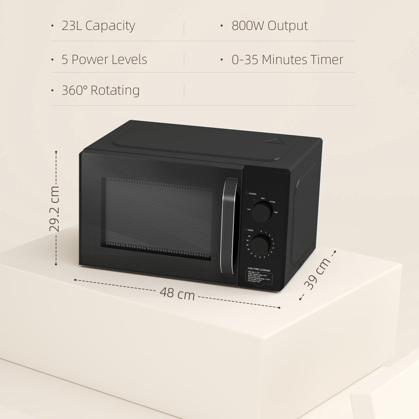 HOMCOM 23L 800W Microwave Oven, Solo Manual Microwave with 5 Power Levels, Defrost, 35 Minutes Timer, Clock, Easy Clean, Small Black Microwave - Black