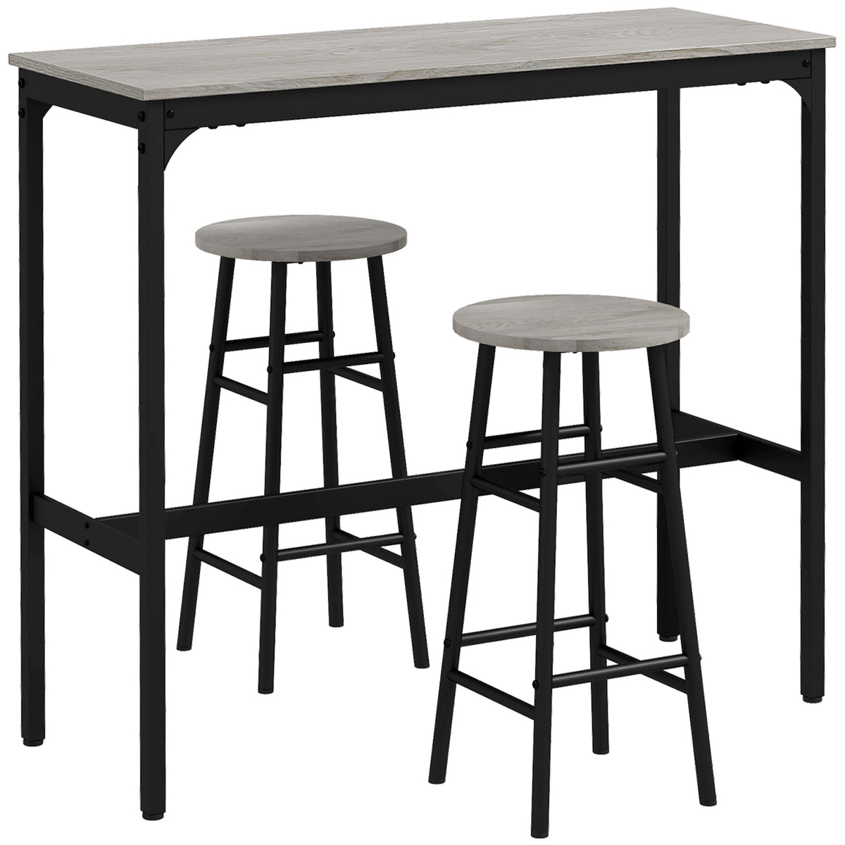 HOMCOM 3 Piece Bar Table Set with 2 Stools, Industrial Bar Table and Stool Set, Dining Table and Chair Set, Grey - Grey
