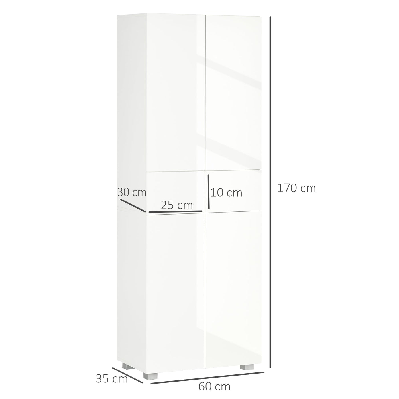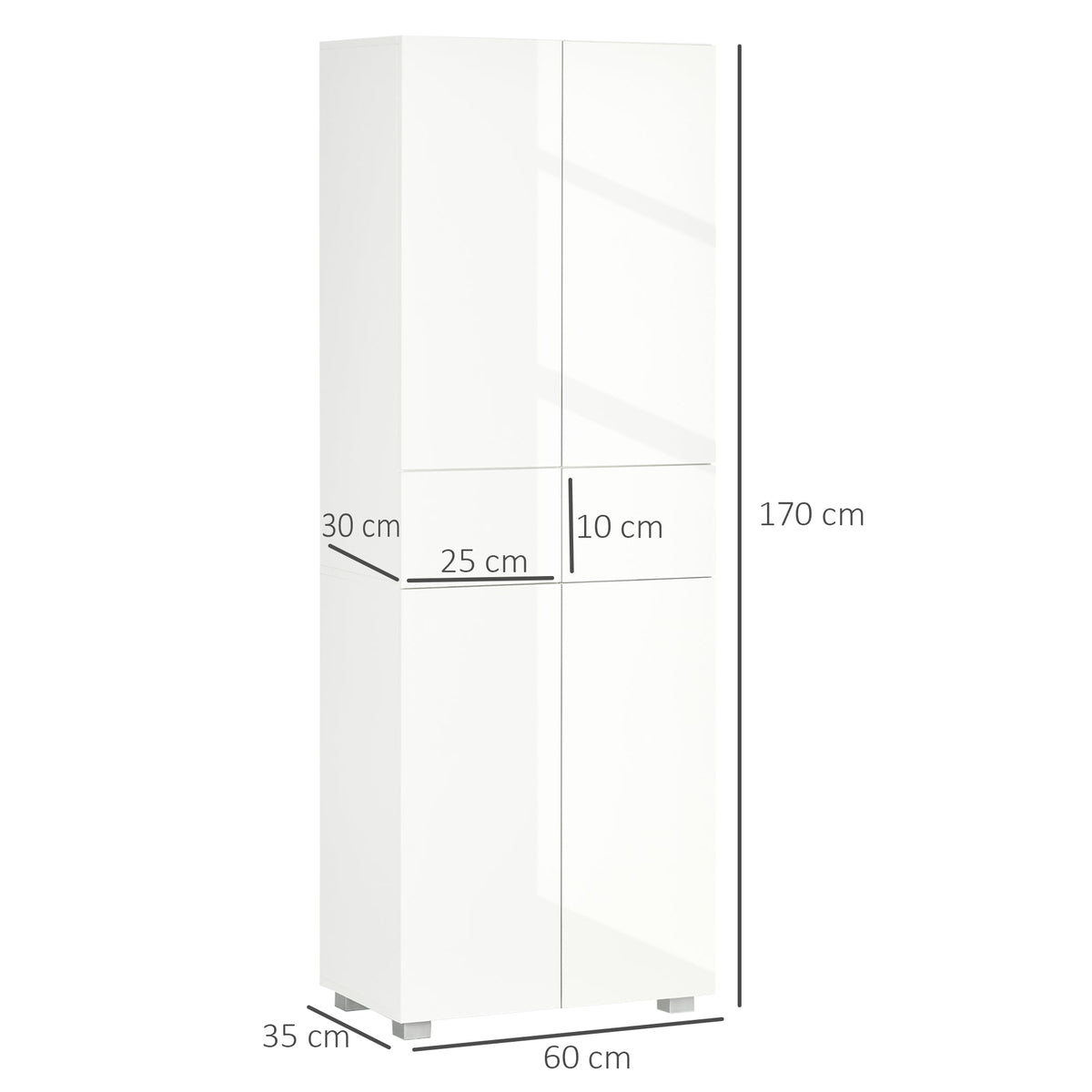 HOMCOM 4-Door Kitchen Cupboard, Tall Freestanding 5-Tier Storage Cabinet with 3 Adjustable Shelves, 2 Drawers for Living Room, Dining Room, Push to Open Design, High Gloss White - High Gloss White