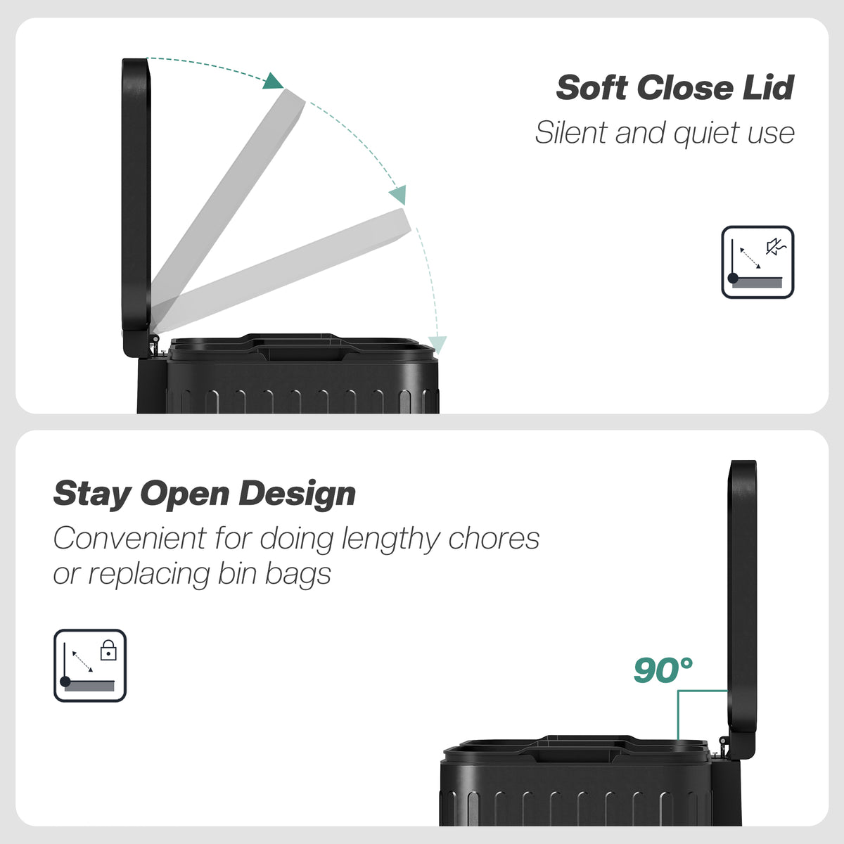 Double the compact hygiene, for the kitchen and beyond: this HOMCOM 40L double kitchen pedal bin. Made from powder coated metal, this is tough piece suited for everyday use; the two-compartment design allows you to separate waste as needed. The lid also has a stay-open option for super easy cleaning. Kitchen waste management made easy and efficient with this dual bin.
