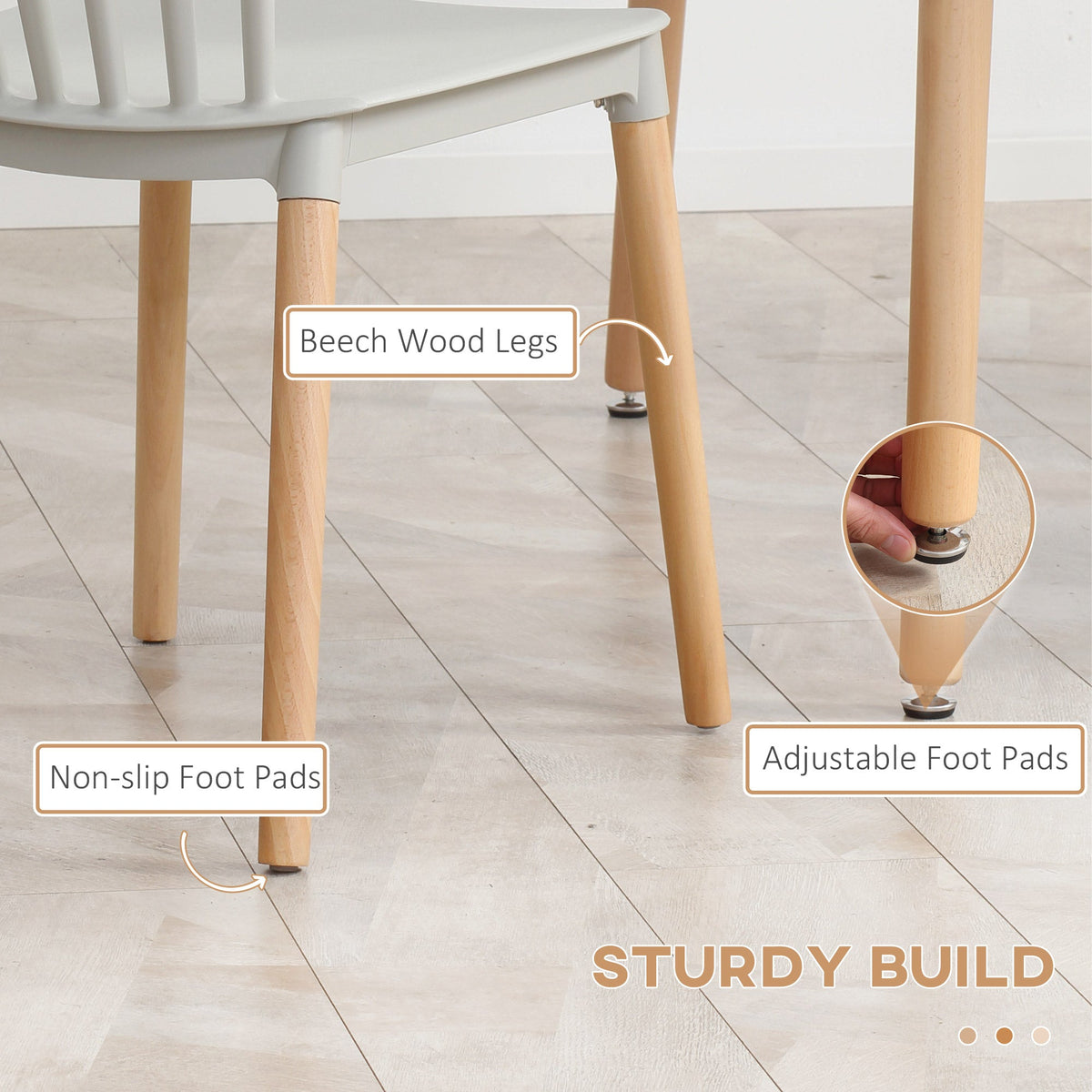 Gather round in simple, Skandi style. This HOMCOM five-piece dining table set comes with white-top seats and a table, with natural-finish wooden legs: an on-trend and stylish design. Set comes with a dining table and four matching chairs - brings you and company together. The armless design of the chairs gives you plenty of room. The wooden legs keep you supported. Complete with handy adjustable feet.