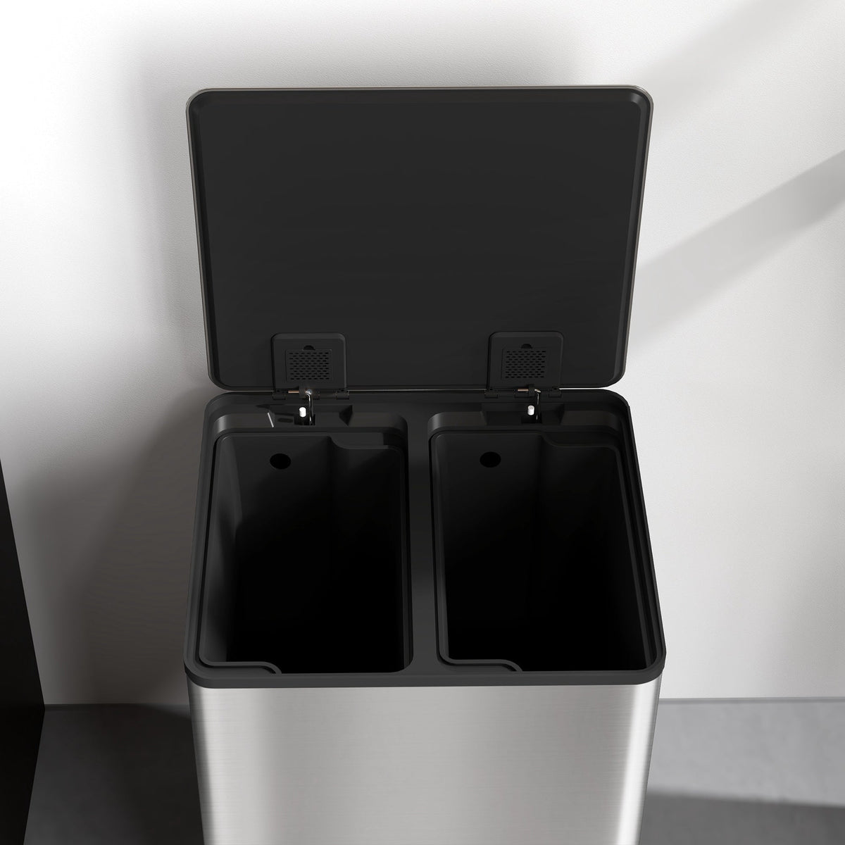 HOMCOM 60L Dual Compartment Stainless Steel Bin, with Deodoriser Holders - Silver Tone - Silver