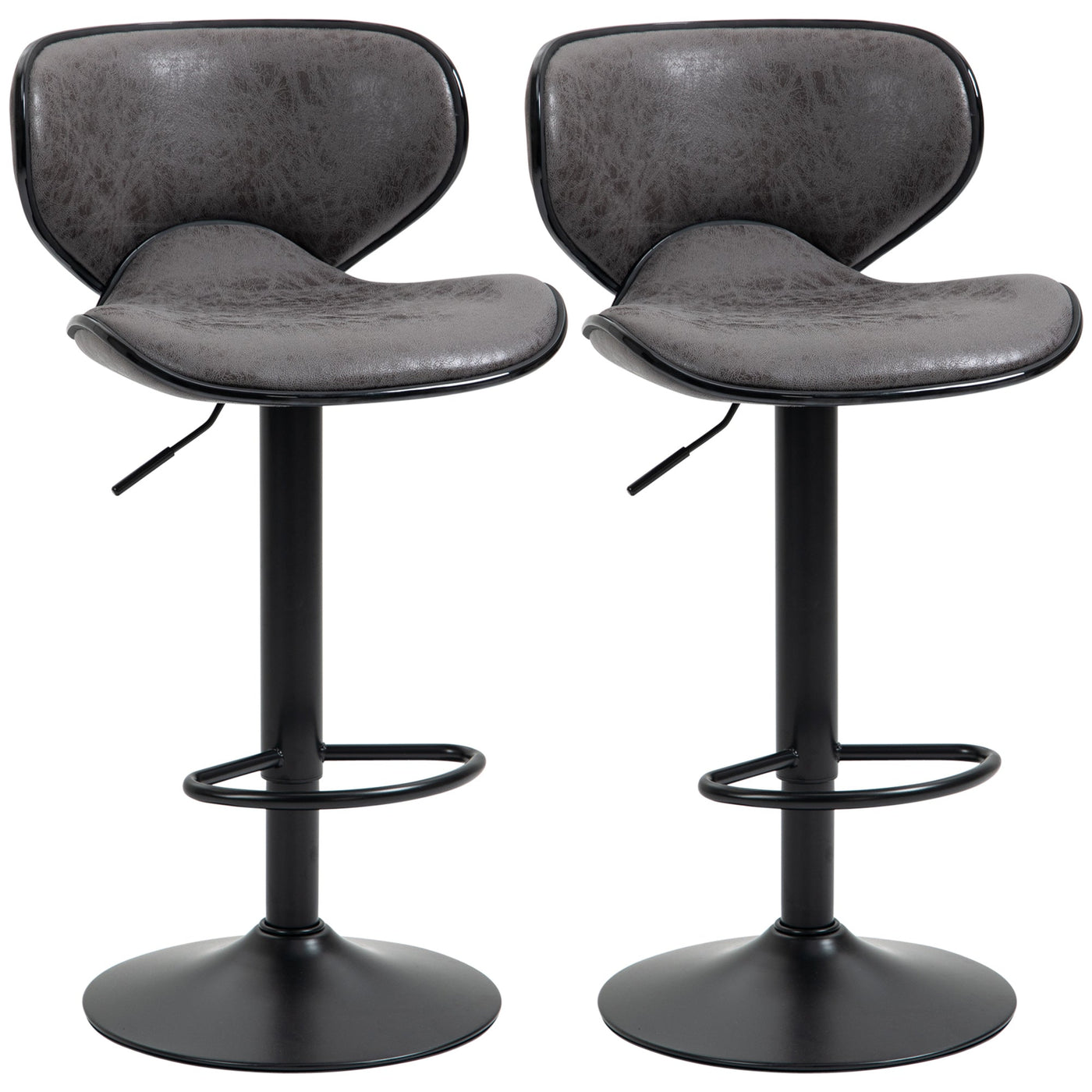 HOMCOM Adjustable Bar Stools Set of 2, Swivel Leathaire Upholstered Barstools with Large Seat, Breakfast Bar Chairs with Back, Footrest and Steel Base, Dark Grey - Dark Grey