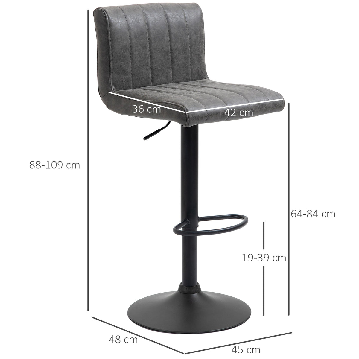HOMCOM Adjustable Barstools Set of 2, Swivel Counter Bar Chairs, Bar Stools with Footrest, PU Leather, Gas Lift, Grey - Grey
