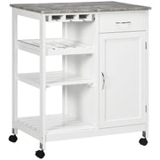 HOMCOM Compact Kitchen Trolley Utility Cart on Wheels with Wine Rack, Drawer, Open Shelf and Storage Cabinet for Dining Room, White - White