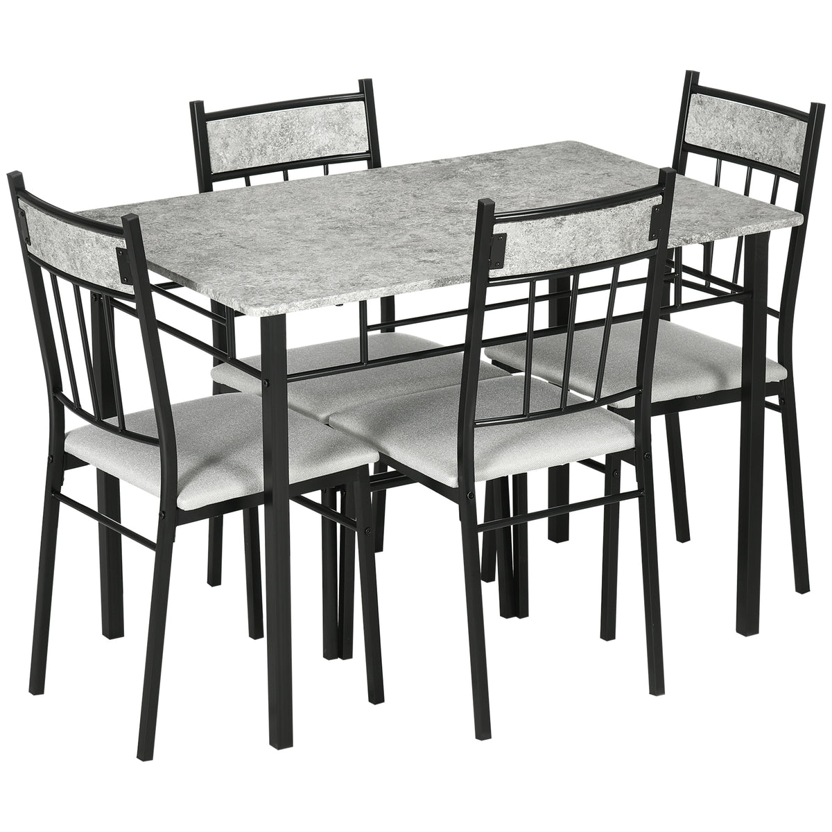 HOMCOM Five-Piece Marble Effect Dining Table Set - Grey/Black - Light Grey