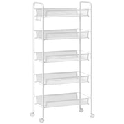 Extra storage, whenever and wherever you need it with this HOMCOM kitchen trolley. It's made from steel to ensure a tough and strong piece; it can be used all throughout the home - from the kitchen, through to the bedroom, the office - and the garage. It's fitted with five trays, so there's plenty of storage for what you need. Vegetable rack is complete with four wheels to move around easily.
