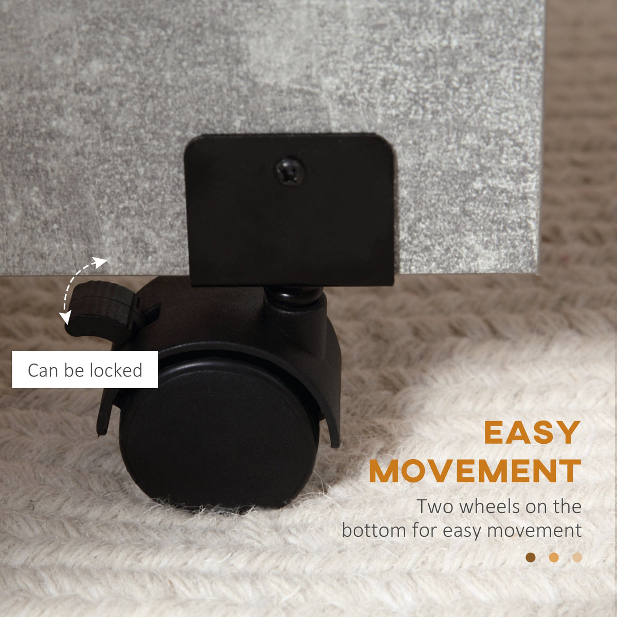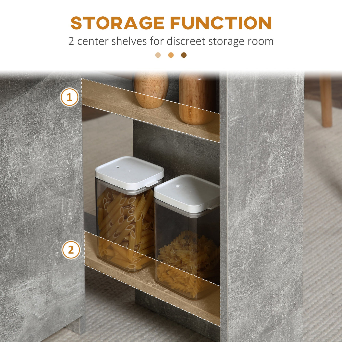 HOMCOM Folding Dining Table, Drop Leaf Table with 2-Tier Shelves, Rolling Casters, for Small Spaces, Kitchen, Cement Grey - Grey