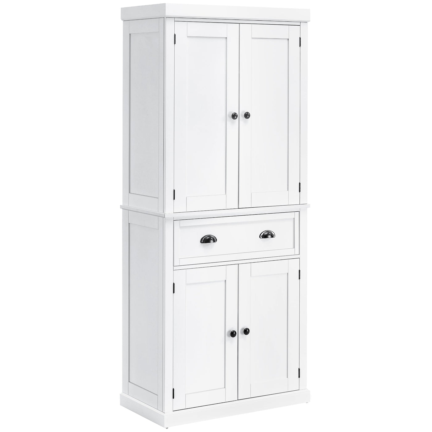 HOMCOM Freestanding Kitchen Cupboard, 184cm Tall Storage Cabinet with Doors and Shelves, Traditional Colonial 4-Door Kitchen Pantry Cupboard with Drawer, White - White