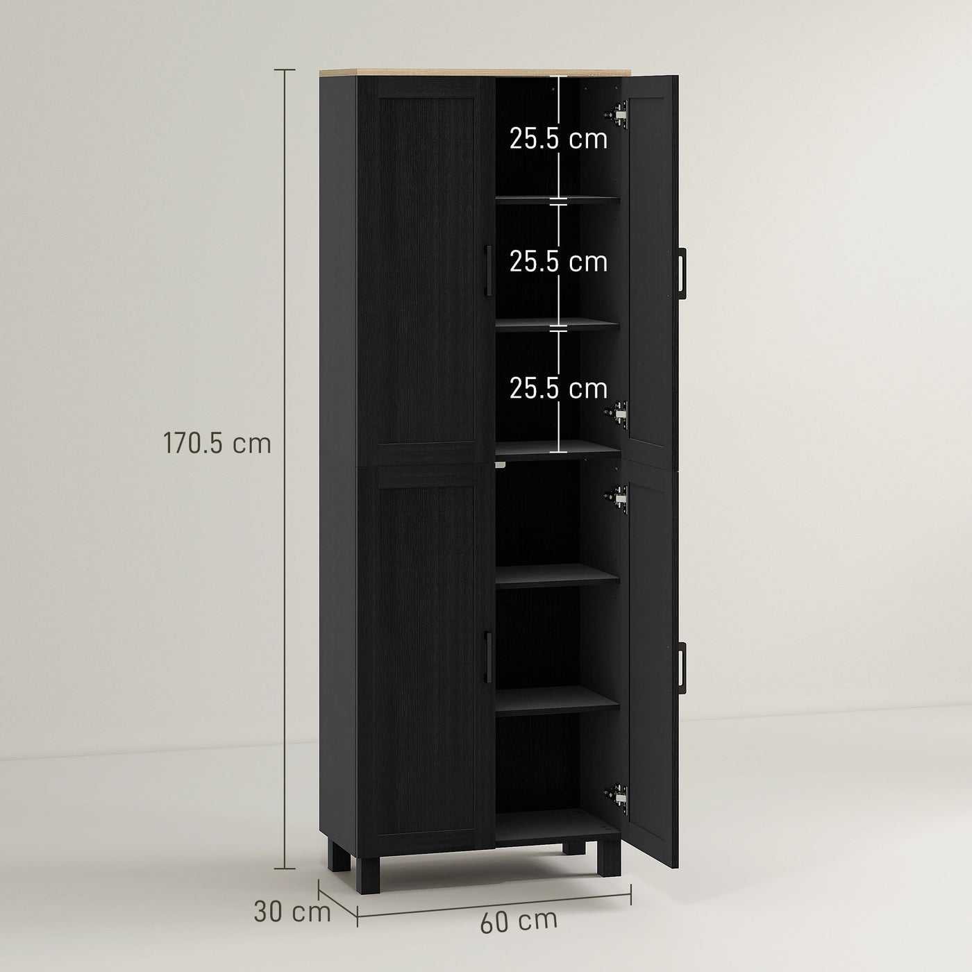 HOMCOM Freestanding Kitchen Cupboard, 4-Door Storage Cabinet with Adjustable Shelves, Modern Kitchen Pantry for Dining Room, 170cm, Black - Black