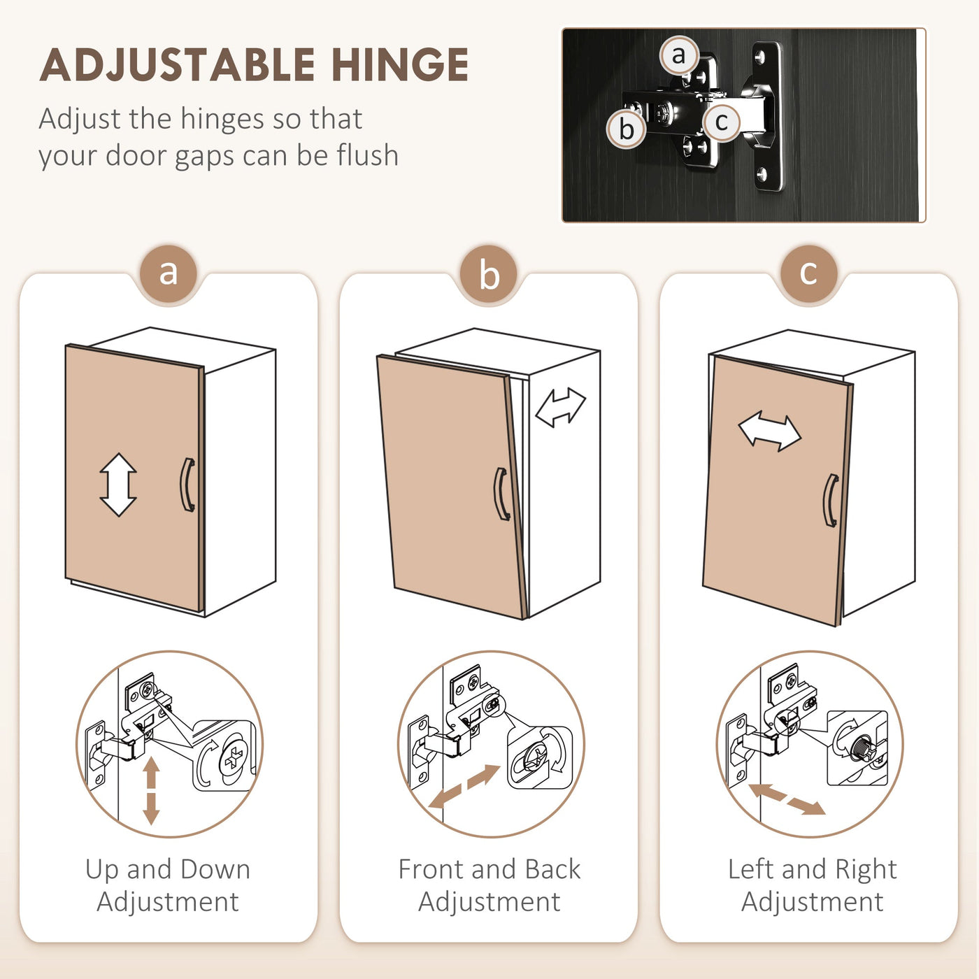 This HOMCOM tall storage cabinet is an easy and stylish way to keep your home tidy. Made from particle board for a sturdy structure, it's formed into a tall and narrow design, making it great for fitting into smaller spots. Inside there are five shelves for storage and organisation - adjustable to fit in differently-sized pieces. Four doors to access top and bottom sides easily. Complete with anti-tipping straps for safety.