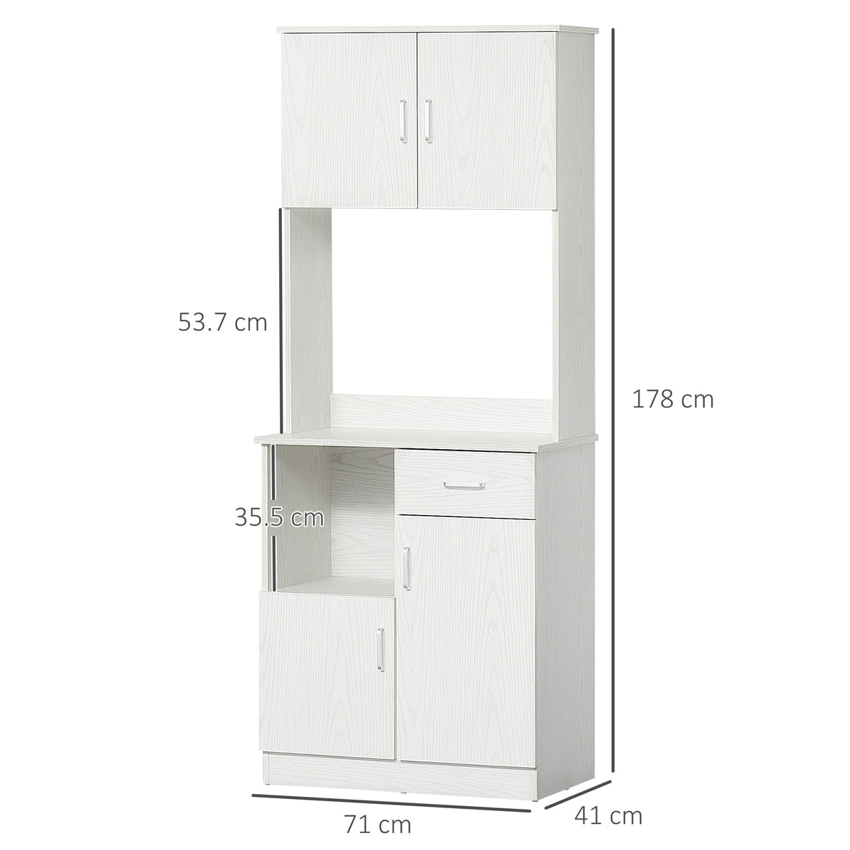 HOMCOM Freestanding Kitchen Cupboard, Modern Kitchen Storage Cabinet with Doors, Microwave Counter and Adjustable Shelves, White - White