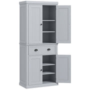This HOMCOM pantry cupboard is an ideal solution for any kitchen. Made from MDF and with particleboard reinforced backboards, it is ideal for storing all your kitchen items from accessories, utensils, dry good and even your cookbooks. The free standing kitchen unit has 4 doors with 3 adjustable shelves for you to position as required. The door handles and knobs are having a brushed nickel finish, giving the unit elegance and style. This is a great unit to have to match any room décor.