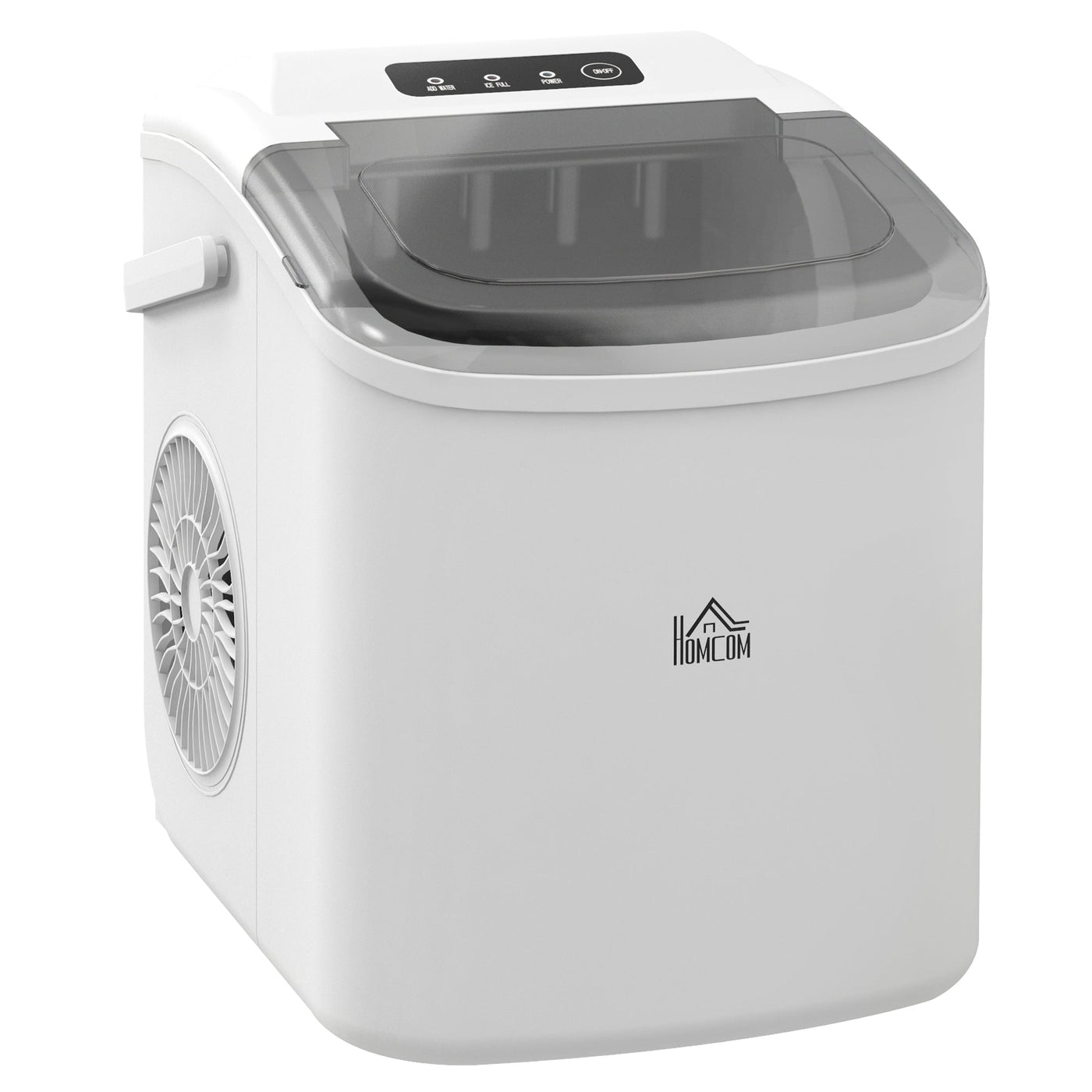 HOMCOM Ice Maker Machine Counter Top, 12Kg in 24 Hrs, 9 Cubes Ready in 6-12Mins, Portable Ice Cube Maker with Ice Scoop and Basket, White - White