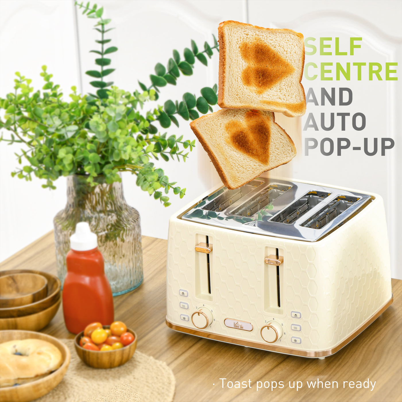 HOMCOM Kettle and Toaster Set, 1.7L 3000W Fast Boil Jug Kettle, 4 Slice Toaster with 7 Level Browning Controls, Beige - Beige