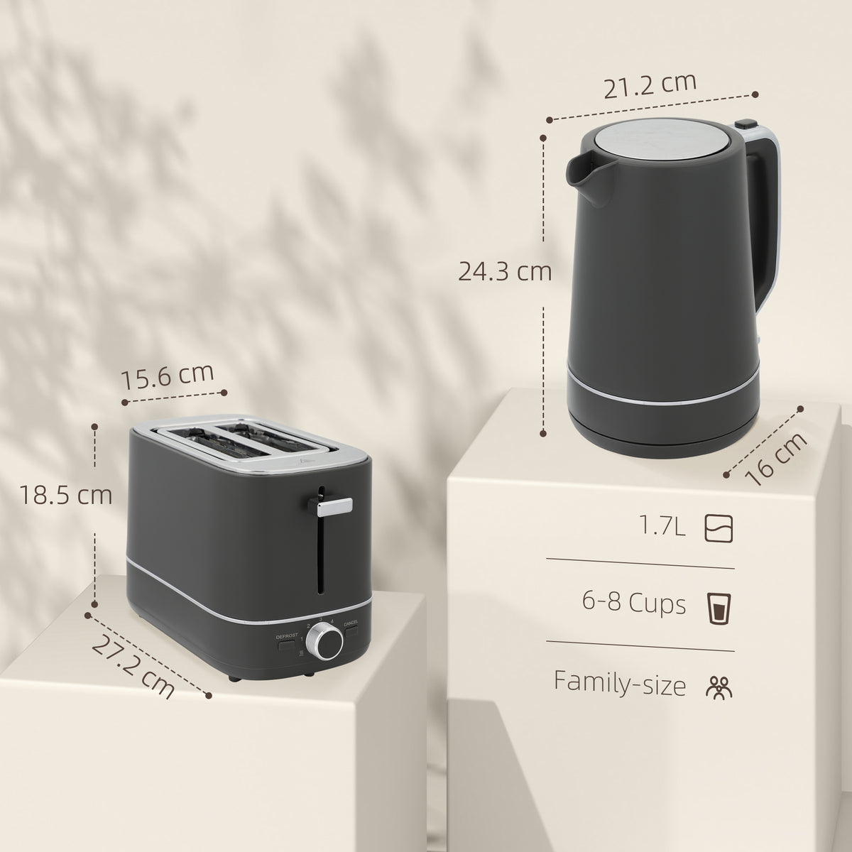HOMCOM Kettle and Toaster Set, 1.7L 3000W Fast Boil Kettle & 2 Slice Toaster Kitchen Set with 6 Level Browning Controls, Defrost, Reheat, Grey - Grey