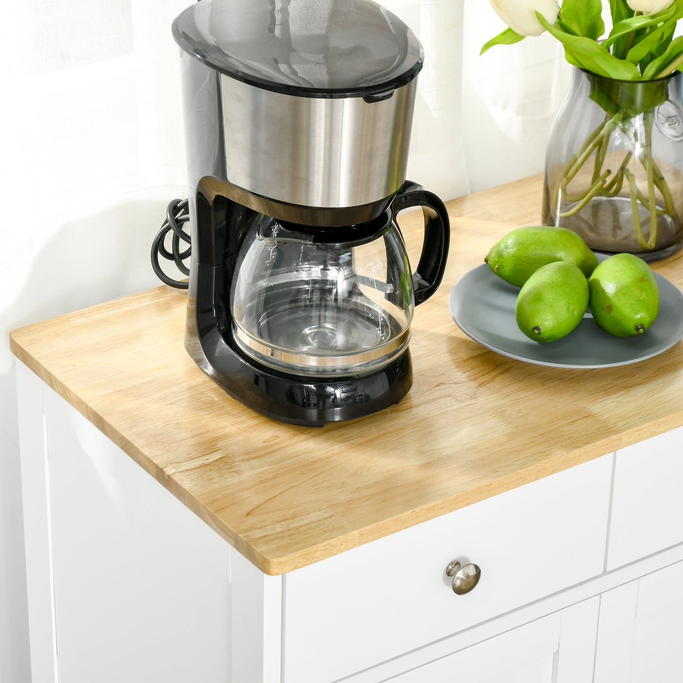 HOMCOM Kitchen Floor Cabinet Side Storage Cupboard Multi-use Sideboard Table with Solid Wood Top, Adjustable Shelf,Drawer for Dining Room, Living Room,Hallway - Nature Wood, White