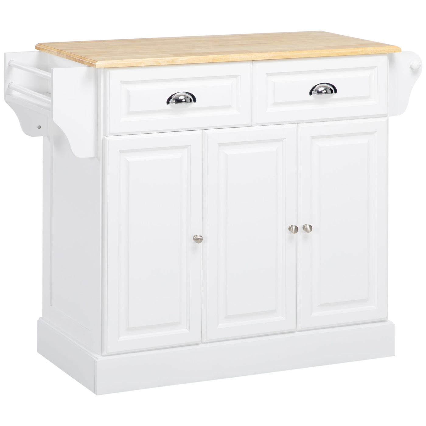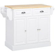 HOMCOM Kitchen Island with Storage Rolling Kitchen Serving Cart with Rubber Wood Top Towel Rack Storage Drawer Cabinet White - White