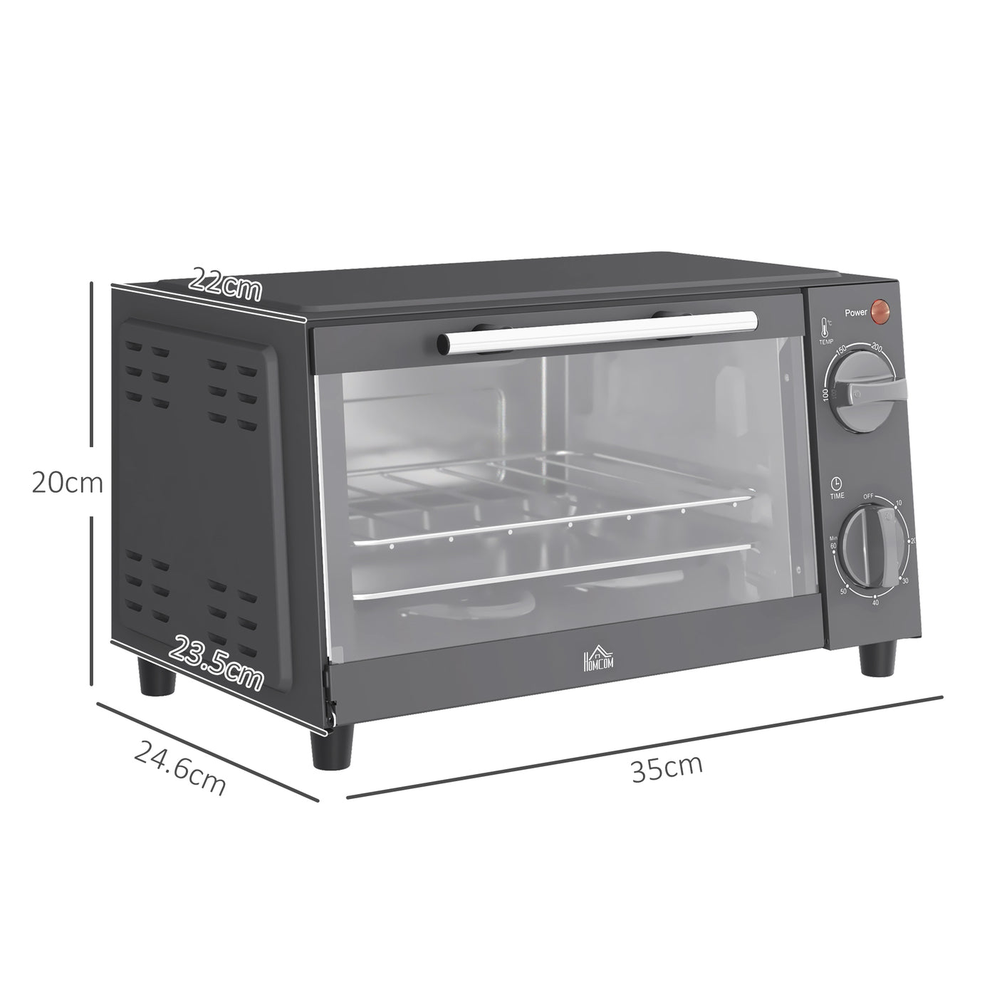 HOMCOM Mini Oven, 9L Countertop Electric Grill, Toaster Oven with Adjustable Temperature, Timer, Dishwasher Safe Baking Tray and Wire Rack, 750W, Grey - Grey