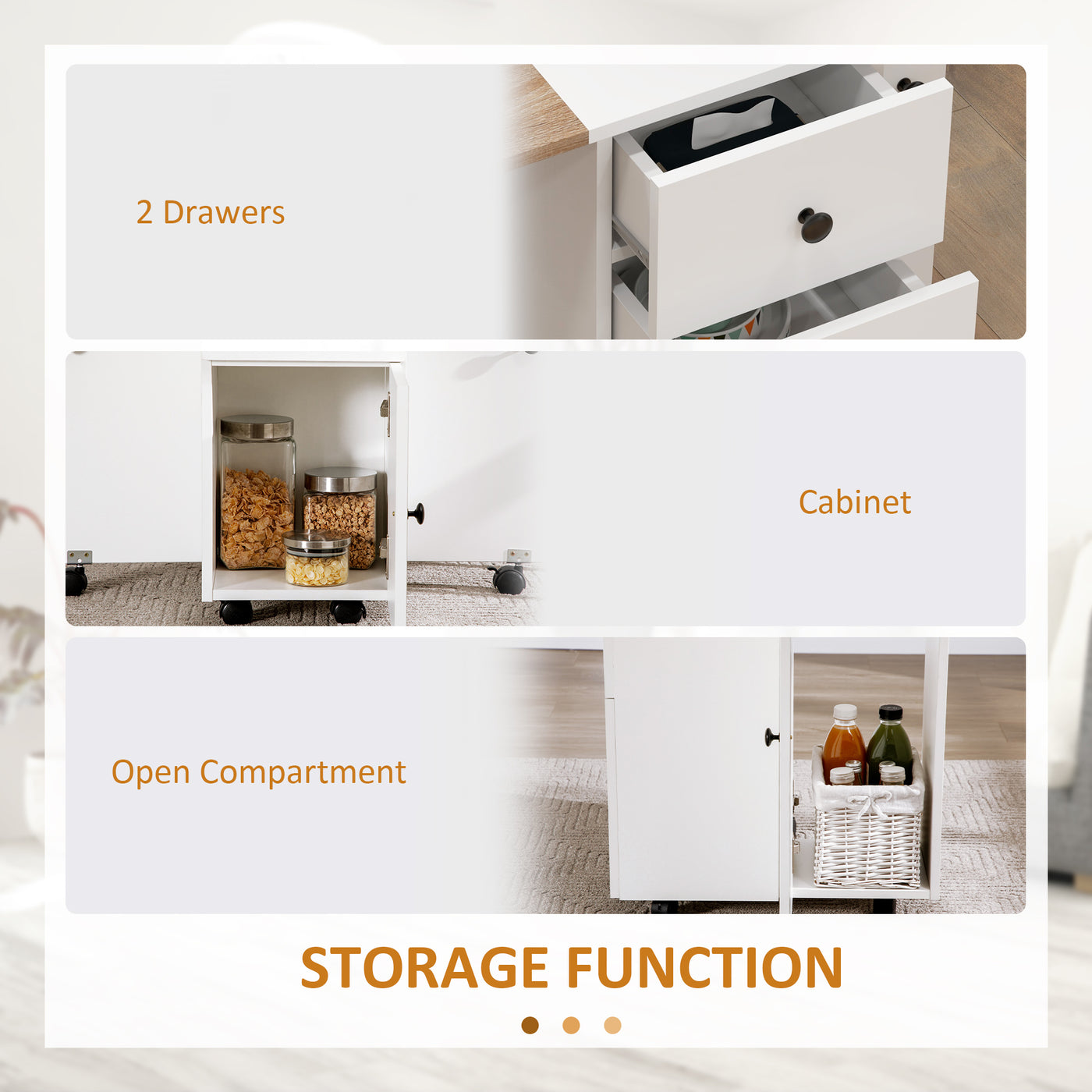 HOMCOM Multi-Storage Six-Person Drop Leaf Dining Table - Oak and White - Oak, White