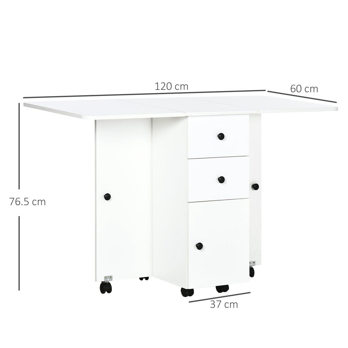 Discover the perfect blend of functionality and style with the HOMCOM expanding drop leaf dining table, designed for those who cherish every inch of their cozy homes. Ideal for small apartments, this table effortlessly transforms to accommodate four to six guests, making it perfect for intimate dinners or festive gatherings. With two drawers, a shelf, and a cabinet, it offers smart storage solutions for your kitchen essentials. Equipped with six wheels, including four with brakes, it glides smoothly to adapt to your space, ensuring both convenience and elegance in your home.