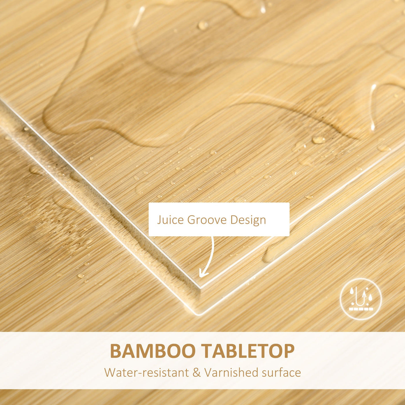 HOMCOM Rolling Kitchen Island Trolley Utility Cart on Wheels with Bamboo Table Top, Storage Cabinet, Drawer and Wire Basket - White