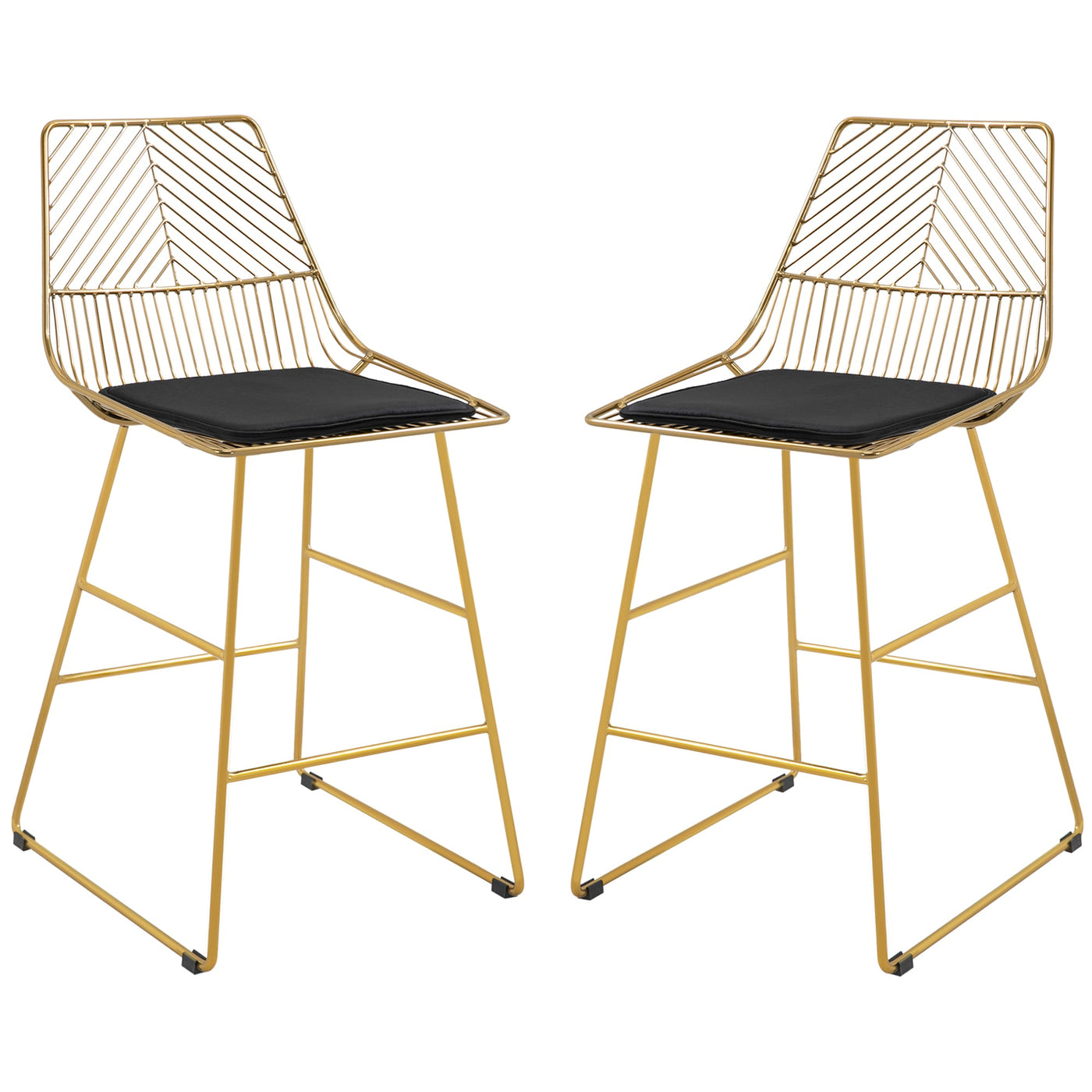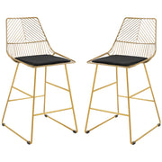HOMCOM Set of 2 Bar Stools, Modern Counter Height Breakfast Bar Chairs with Wire Metal Frame for Kitchen, Dining Room, Gold - Gold Tone